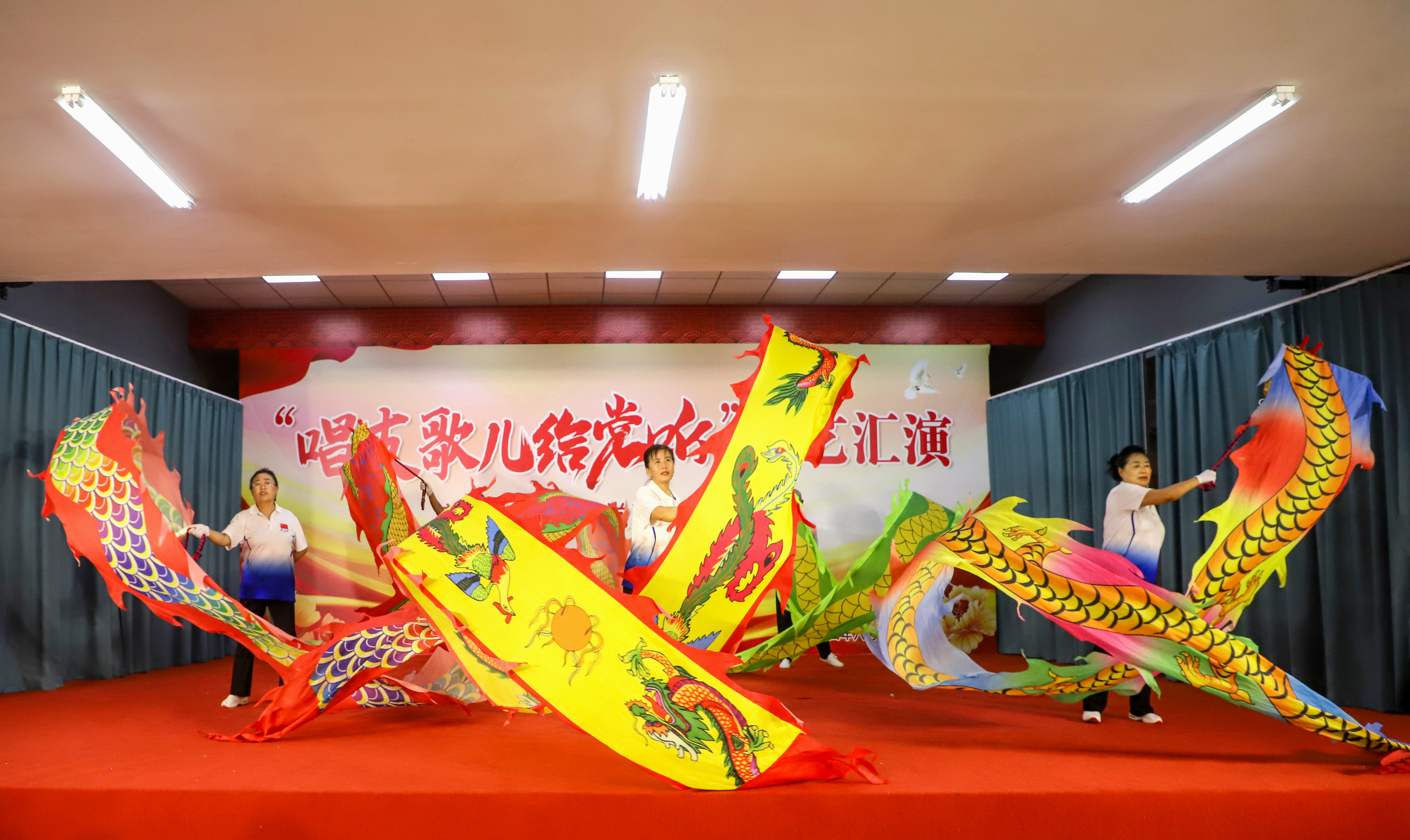 演出在熱烈的鼓舞《沒有共產(chǎn)黨就沒有新中國》中拉開序幕。隨后,舞蹈、歌伴舞、表演唱、戲曲選段、柔力球、太極拳、舞龍等21個(gè)各種形式的節(jié)目輪番登場。《南湖的船黨的搖籃》《紅梅贊》《媽媽教我一支歌》等一支支動(dòng)聽的歌曲,被老年大學(xué)學(xué)員們深情演繹;男聲獨(dú)唱《最美的歌兒唱給媽媽》、舞蹈表演《哈達(dá)獻(xiàn)給您》、薩克斯合奏《黨啊親愛的媽媽》、交誼舞《歡聚一堂》等節(jié)目精彩紛呈,把演出一次次推向高潮。演出展現(xiàn)了武邑人民對黨、對祖國、對家鄉(xiāng)的熱愛之情,表達(dá)了對更加美好未來的向往與追求。