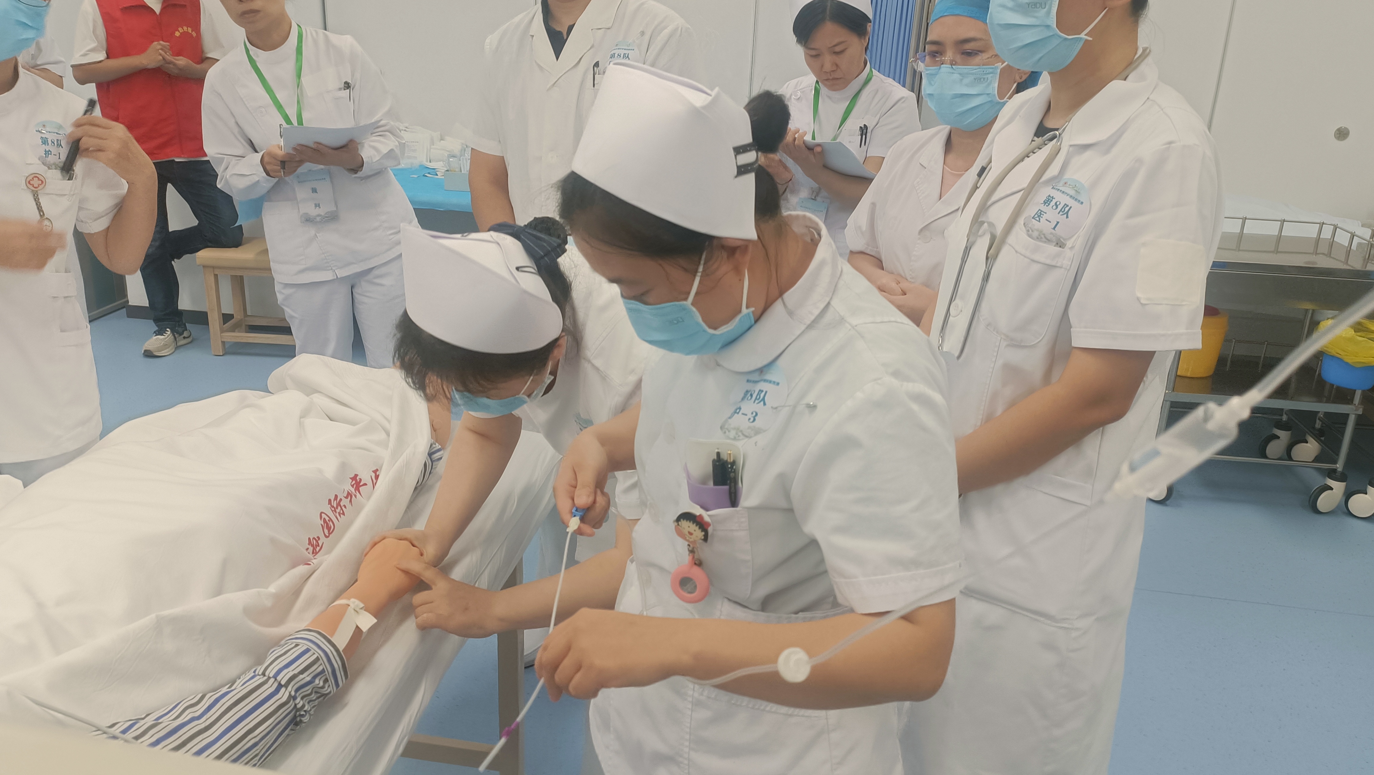 競賽期間,所有參賽選手沉著應對,理論知識掌握扎實,絕大多數選手均能在規定時間的一半時間內完成筆試考核。單人實際操作中,根據現場抽簽確定考核項目,全部按照操作前準備、邊操作邊解說的步驟進行,分別展示了幼兒洗手、沖泡奶粉、換尿不濕、清潔消毒、急救處理等方面的內容,評委現場對選手的操作流程進行評分和點評,并提出相關意見建議。