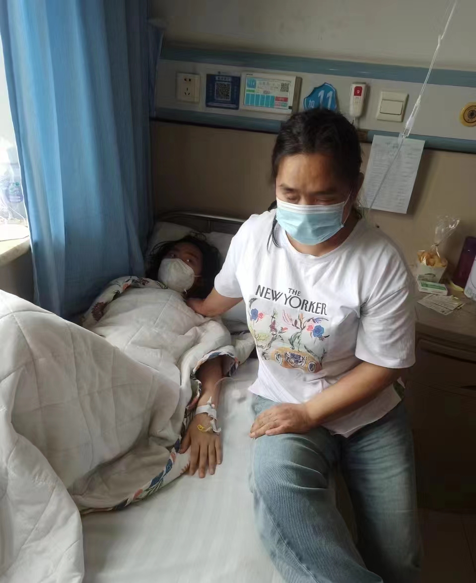 剛開始住院時,張奧盈并不知道自己的真實病情。為了能撐到高考,病床上的她堅持一邊打著點滴,一邊做著卷子。守著寫不了半小時就累得無力躺下歇口氣的女兒,媽媽李晚融不知道偷著哭了多少回。“不敢讓孩子看見,我就摸索著去廁所里偷著哭,哭完了洗把臉回來,還要在孩子面前假裝堅強樂觀。我的眼睛之前還有點光感,能看到面前有人影,因為哭得太多,現在已經完全看不見了?!崩钔砣谡f著又流下淚來。