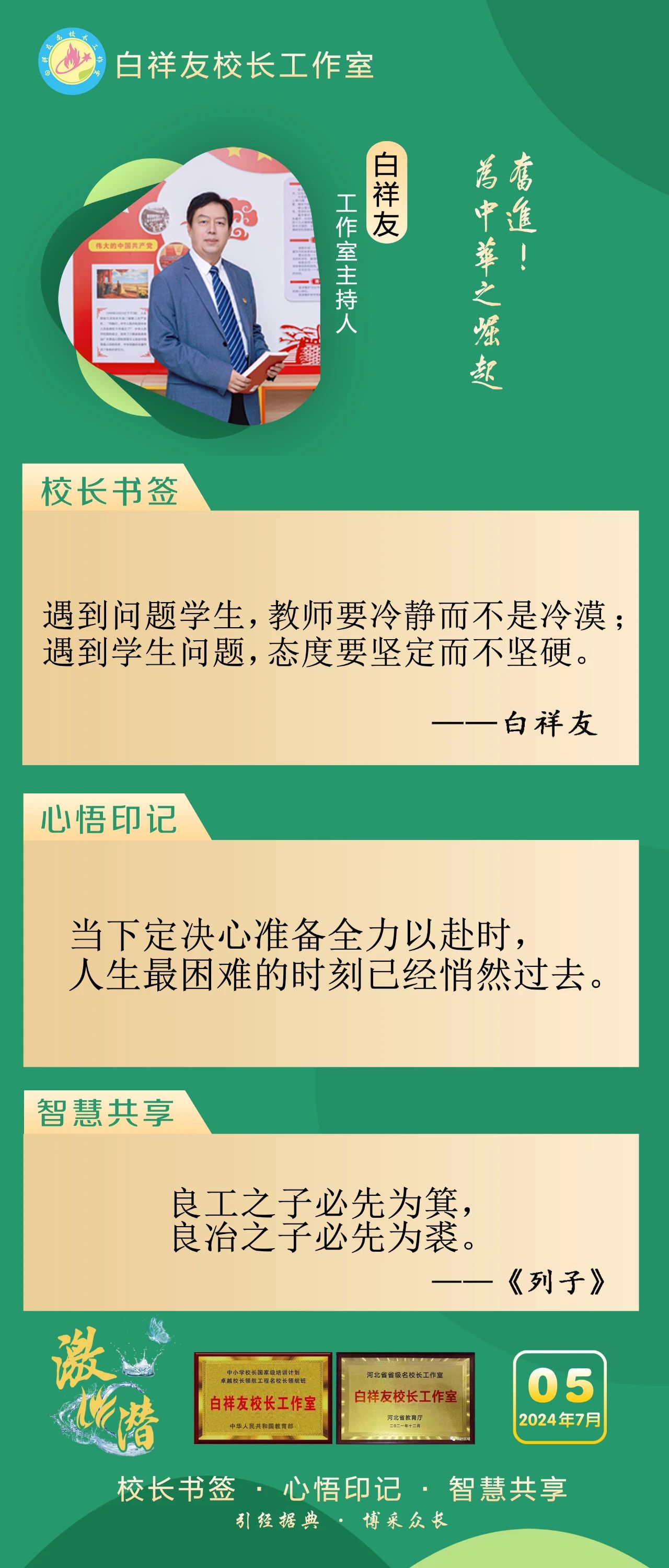 “白祥友校長工作室”成立于2019年4月,是教育部“國培計劃”中小學名校長領航工程、河北省首批名校長工作室,目前省內外成員校20個。工作室堅持“資源共享、智慧共融、互助共贏”理念,已成為思想碰撞的交流場,資源共享的品牌站,成果展示的輻射源。