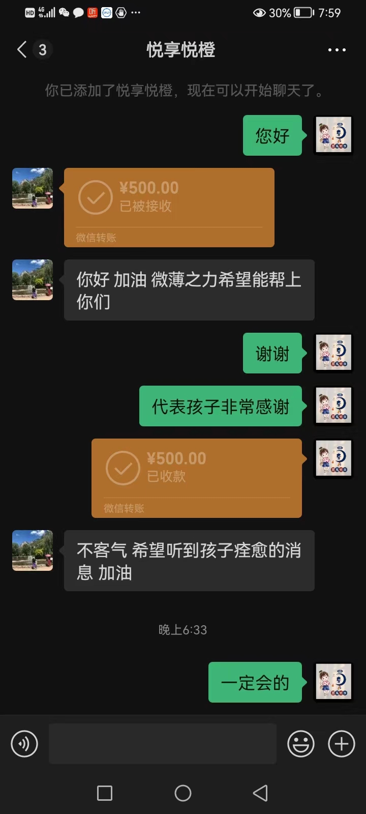 從4日下午開始,有上百位愛心人士、愛心企業(yè)通過電話、新聞熱線聯(lián)系到了李晚融。“有的人直接把捐款打到我女兒的賬戶,有的打來電話安慰鼓勵女兒好好治療,還有的為我們接下來的治療推薦好的醫(yī)院、醫(yī)生,還有的人有相似的經(jīng)歷,為我們推薦有效的治療方法,我真的由衷地感謝大家。”李晚融感激地說。