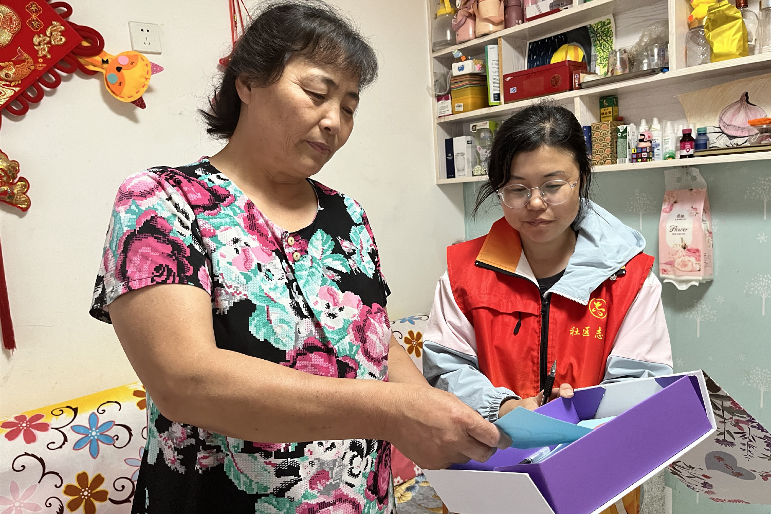社區(qū)工作者上門征集居民微心愿。馬景倩 攝