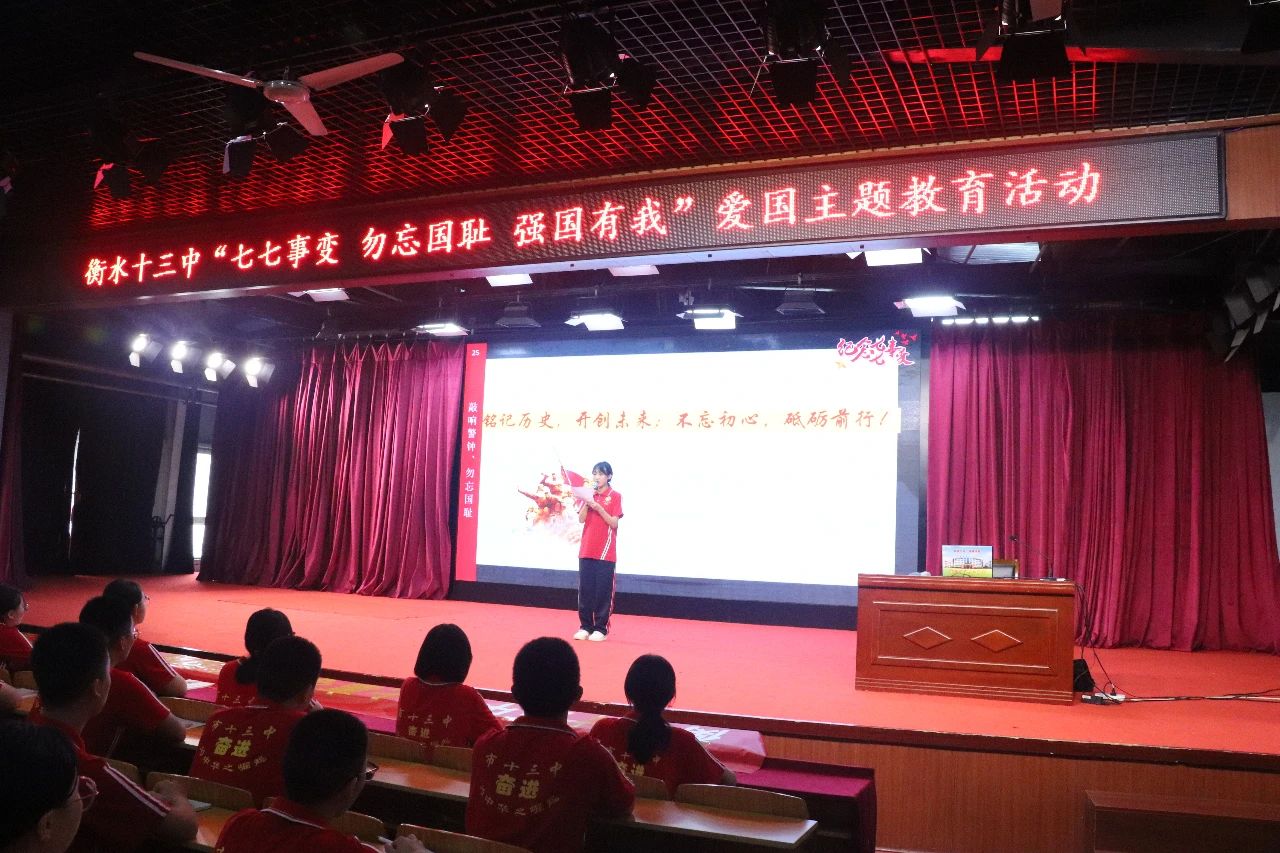 7月7日,是“七七事變”87周年紀念日,衡水市第十三中學舉行了一場以“七七事變 勿忘國恥 強國有我”為主題的愛國教育活動,緬懷先烈,銘記歷史,激發師生的愛國情懷與強國之志。