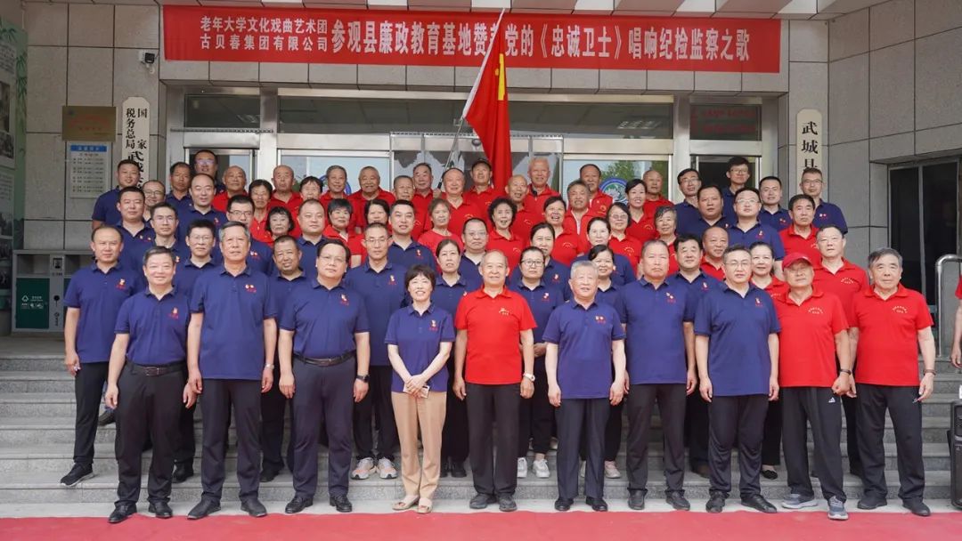 現(xiàn)場學(xué)習(xí)結(jié)束后,武城縣老年大學(xué)文化戲曲藝術(shù)團的演員們?yōu)榇舜位顒訋砹撕铣吨艺\衛(wèi)士,唱響紀檢監(jiān)察之歌》、京劇《時刻把古貝春酒廠掛心懷》等精彩節(jié)目。