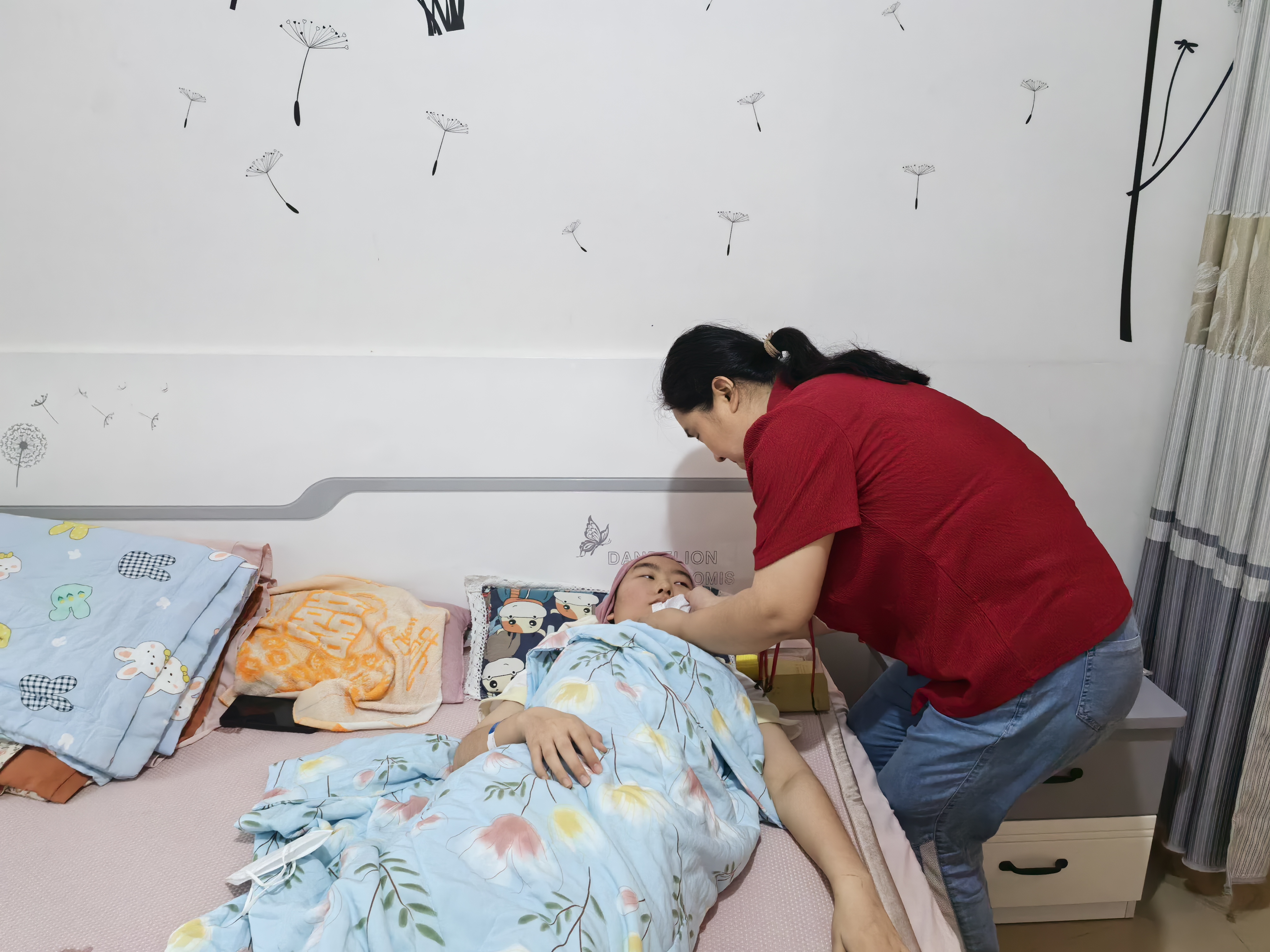 再次見到張奧盈,她的精神狀態和身體情況比上次好了很多,可以慢慢下床走動,但還是有無力和憋悶的感覺。