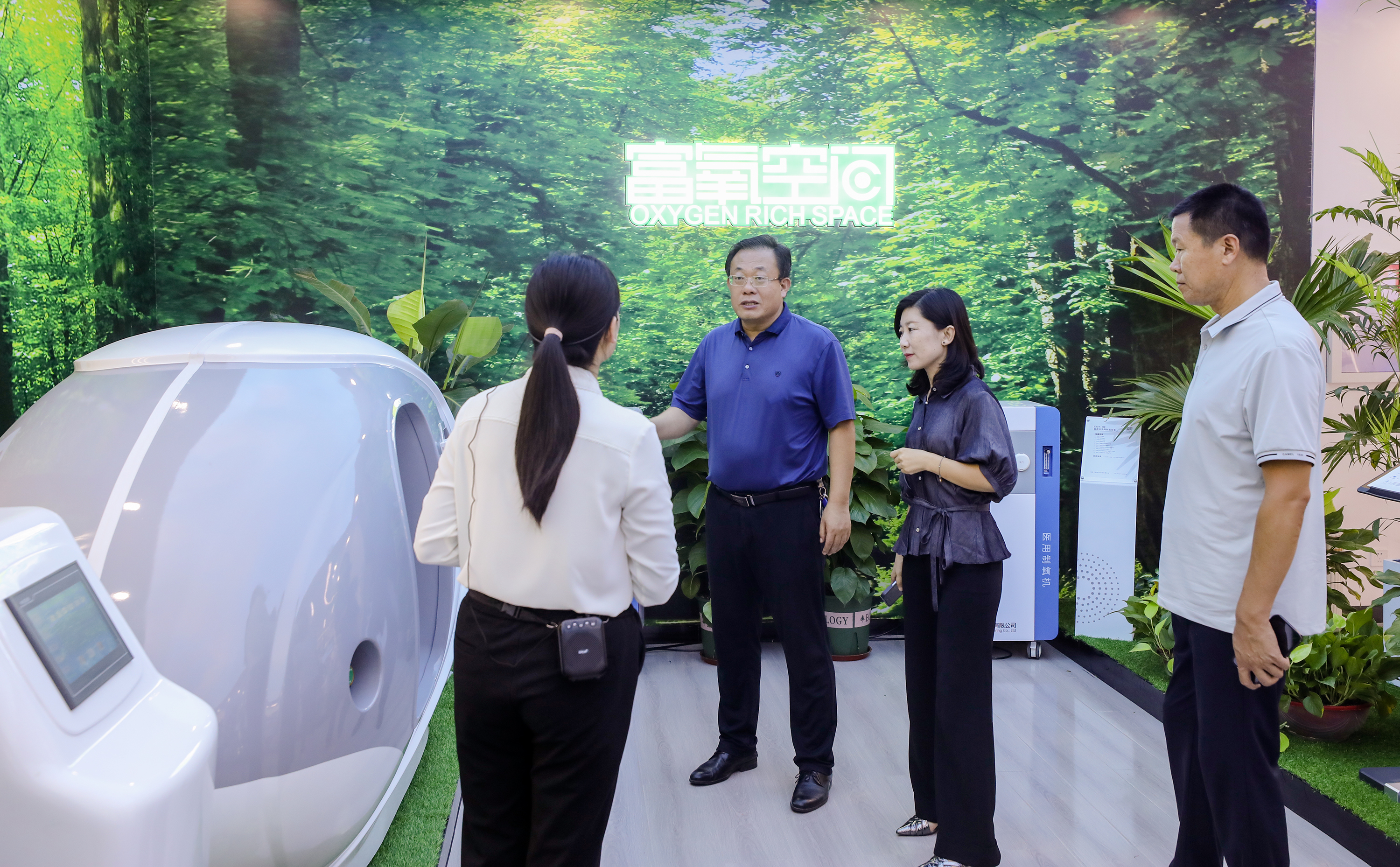 當高科技與醫療器械、康復輔具相遇,會擦出怎樣的“火花”?產業發展中心內,既有護理床、輪椅等傳統產品,還有智能定位拐杖、微壓大氣艙、適老化改造監護可視化系統等高端智能產品。采風團一行不時被眼前充滿“智慧”的展品吸引,大家邊聽邊看,感受高科技帶給醫療健康的魅力。