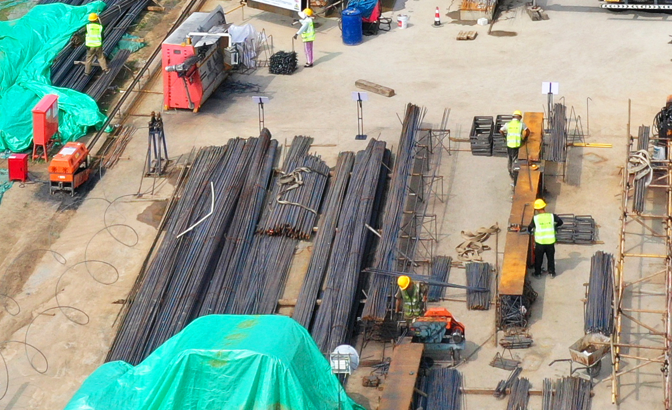 滏陽路(前進(jìn)街至育才街)道路改造提升工程項(xiàng)目建設(shè)現(xiàn)場(chǎng)施工人員正在切割鋼筋。