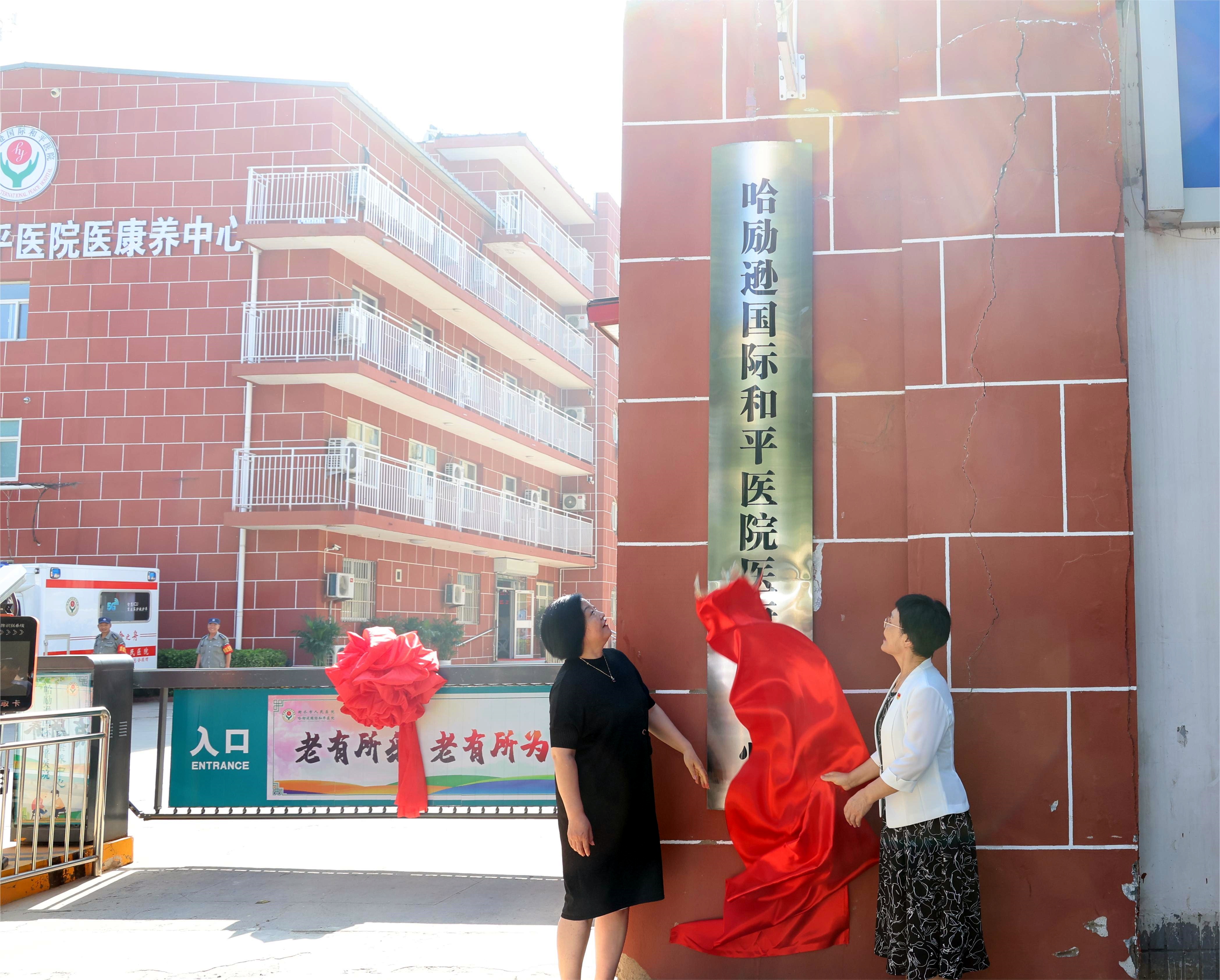 衡水市衛健委黨組書記、主任高衛紅(左)與衡水市人民醫院(哈勵遜國際和平醫院)黨委副書記、院長曹雙清為哈勵遜國際和平醫院醫康養中心揭牌。
