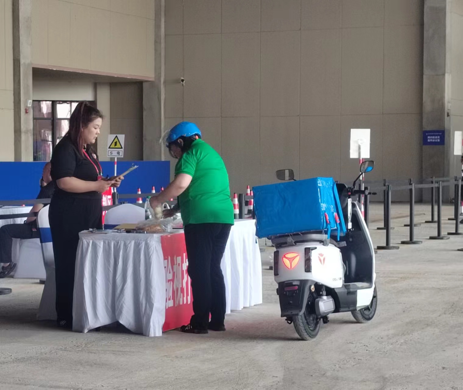 在比賽現(xiàn)場(chǎng)記者看到,李娜進(jìn)入網(wǎng)約配送員決賽實(shí)操現(xiàn)場(chǎng)后,她按照實(shí)操比賽的內(nèi)容,模擬配送員接單配送全過(guò)程,在開(kāi)工準(zhǔn)備、接單取餐、路況應(yīng)對(duì)、送餐速度、服務(wù)質(zhì)量等各方面接受考核。在配送途中,賽方還設(shè)置了過(guò)窄橋、過(guò)環(huán)島路口等環(huán)節(jié),全面考驗(yàn)騎手的配送、溝通等綜合能力,力爭(zhēng)達(dá)到緊貼生活實(shí)際的“沉浸式”競(jìng)賽效果。