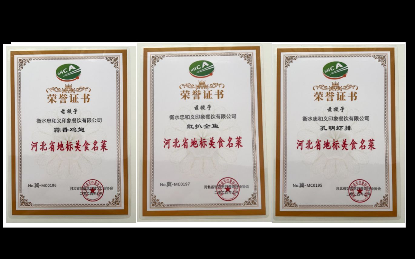 最終,經過觀展觀眾評選、專業人士評比,衡水忠義“三國宴”文化菜系“孔明蝦排”,特色菜“蒜香雞翅”“紅扒全魚”榮獲河北省飯店烹飪餐飲行業協會頒發的“河北省地標美食名菜”榮譽稱號。