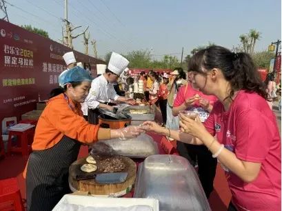 2024保定馬拉松補給區,驢肉火燒等味道鮮美、種類豐富的本地特色美食,讓來自五湖四海的“跑友”們贊不絕口。劉佳 攝