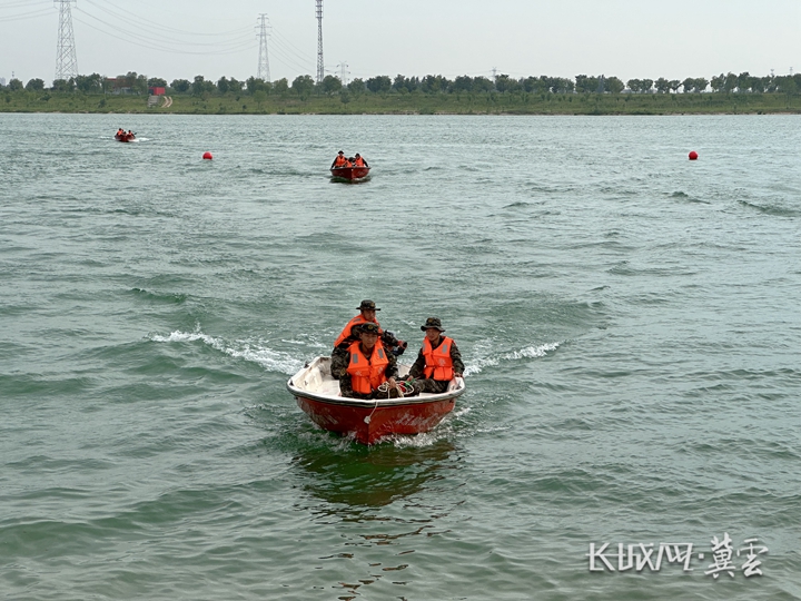 隊員們駕駛沖鋒舟,進(jìn)行水上救生應(yīng)急演練。長城網(wǎng)?冀云客戶端記者 張藝萌 攝