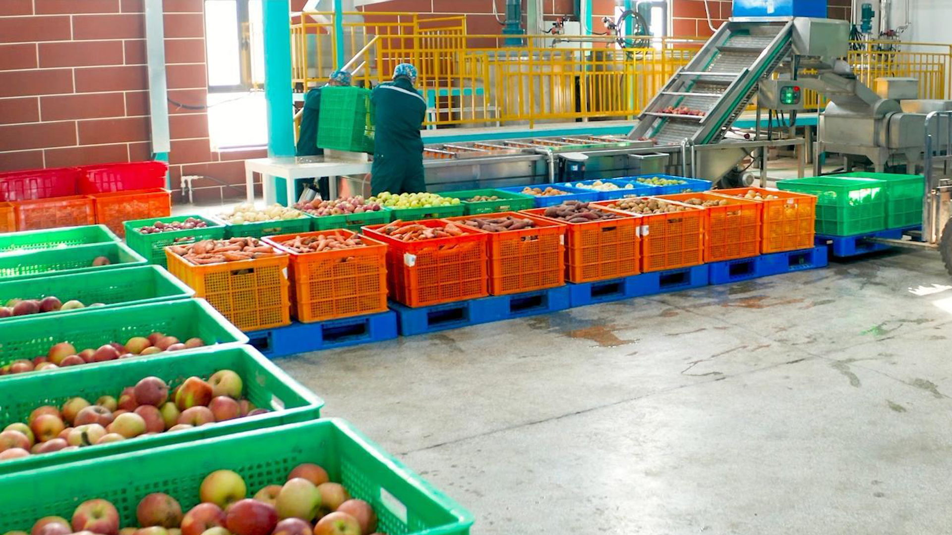 在河北鄭莊農牧科技有限公司的備料車間內,整齊地擺放著蘋果、胡蘿卜等飼料原料,備料人員正在將蔬果投放到進料口打漿,通過過熟化全液態、全封閉管道輸送給料系統實現數字化精準投喂。