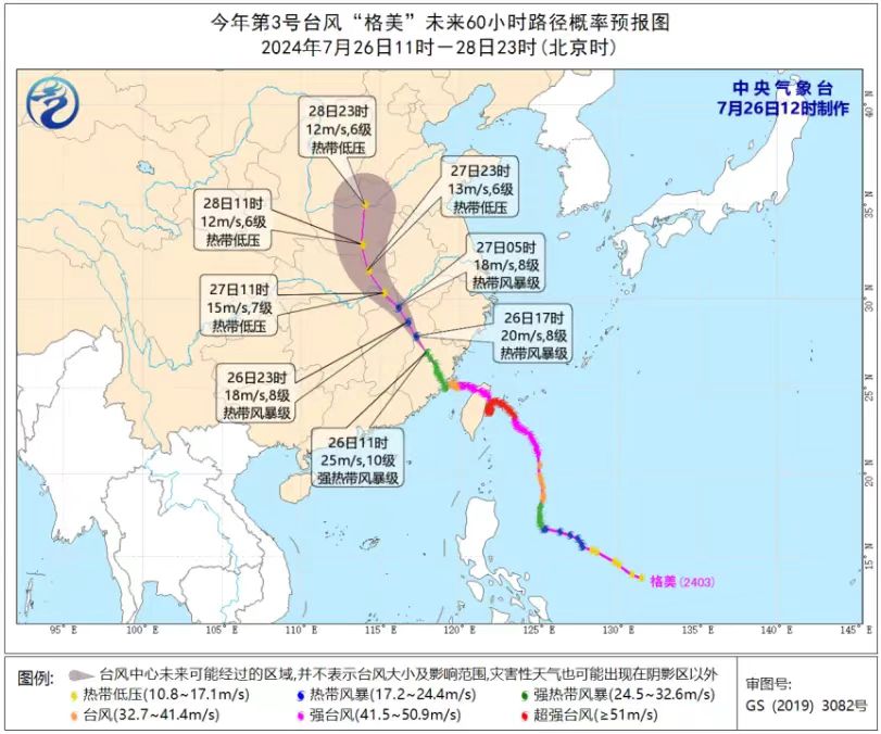 臺風“格美”(強熱帶風暴級)的中心26日上午11時位于福建省順昌縣境內,外圍最大風力10級。預計,“格美”將以每小時20公里左右的速度向西北方向移動。雖然“格美”登陸后強度有所減弱,但隨著它不斷深入內陸,并和副熱帶高壓一起向北輸送水汽,依然會給我國中東部地區帶來強勁的風雨影響。
