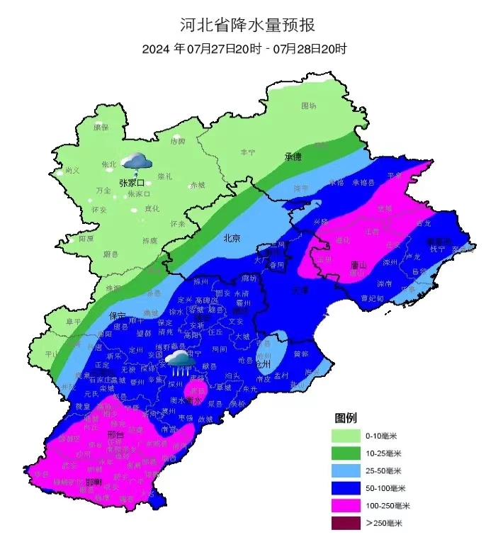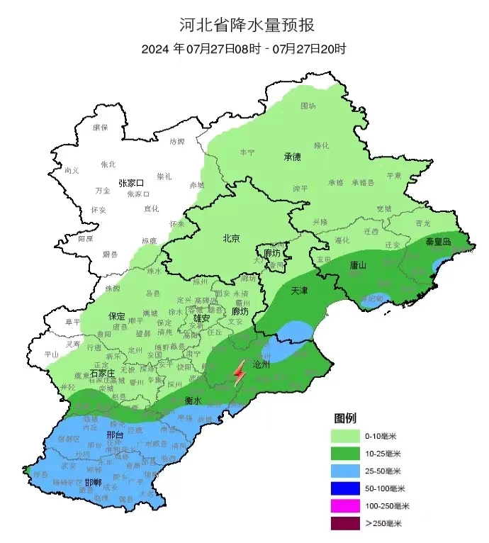 衡水市氣象臺7月26日12時發布重要氣象專報,受臺風“格美”減弱低壓影響,預計27日開始,我市將有一次強降雨過程,累積降雨量80~150毫米,部分鄉鎮可達250毫米以上。最強降雨時段在28日,最大雨強為40~70毫米/小時。