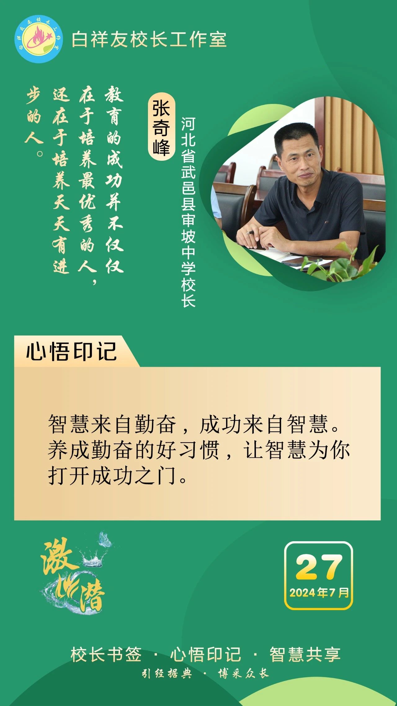 “白祥友校長工作室”成立于2019年4月,是教育部“國培計劃”中小學名校長領航工程、河北省首批名校長工作室,目前省內(nèi)外成員校21個。工作室堅持“資源共享、智慧共融、互助共贏”理念,已成為思想碰撞的交流場,資源共享的品牌站,成果展示的輻射源。