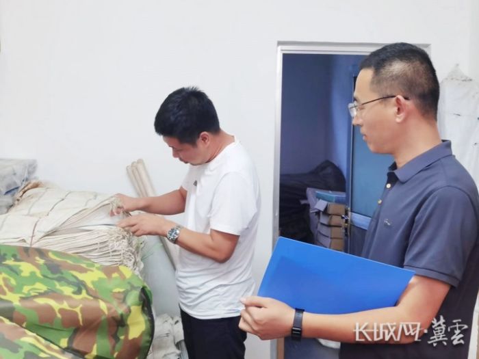 在青龍滿族自治縣馬圈子鎮政府,工作人員正在清理防汛物資。長城網·冀云客戶端記者 王震軍 攝