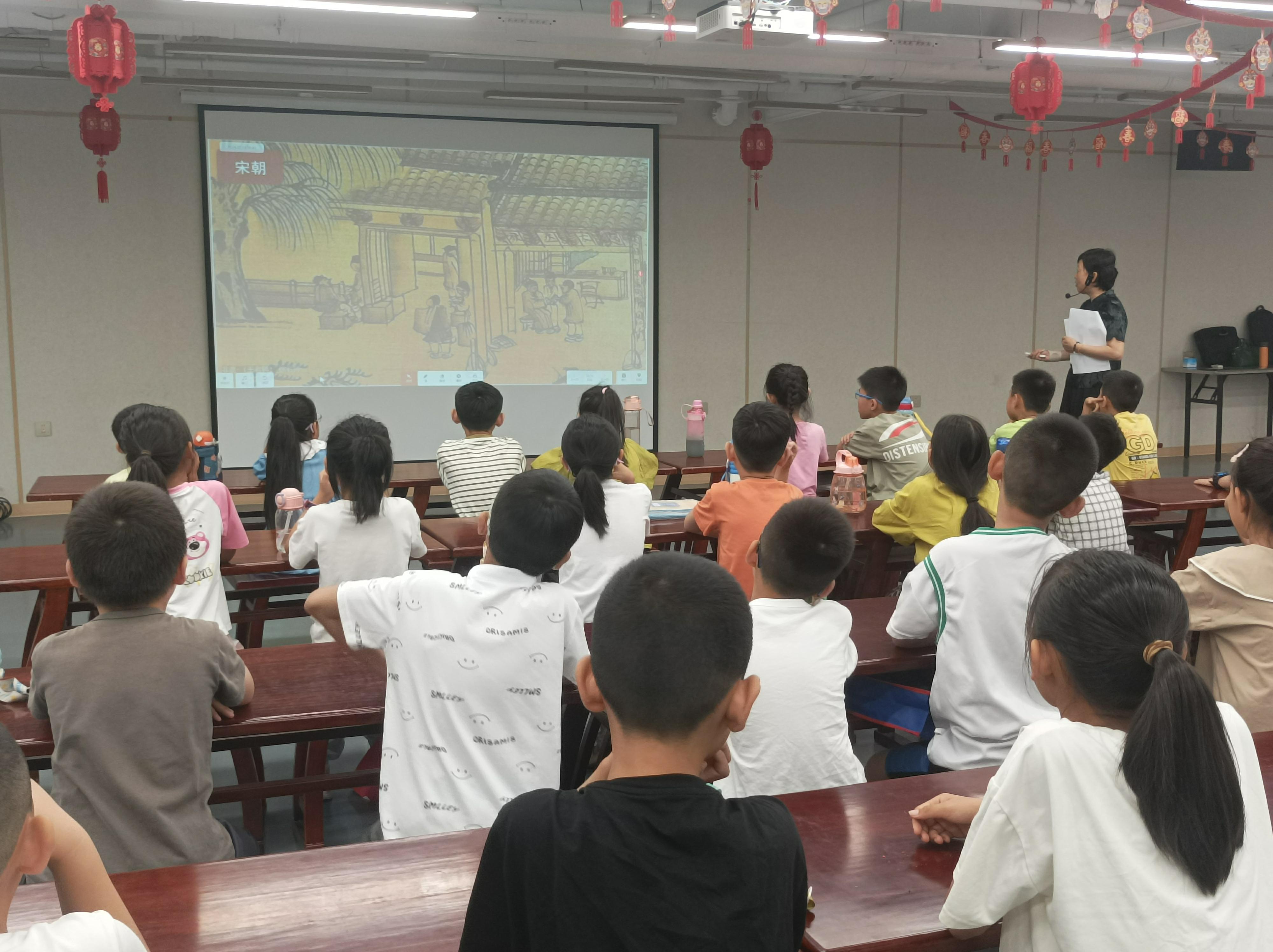 在沁園社區活動中心的愛心托管夏令營,記者看到,在教室前,擺放著一幅課程表展示牌,除了寫作業,還有家風傳承、非遺項目體驗、文藝活動、國際象棋、太極、說文解字、詩詞、書法等十余種課程。“這是我們專門為孩子們編排的課程表,”昊和沁園初心社工負責人王金秀介紹,除了輔導學習內容,他們還為孩子們開設了豐富多彩的課程,讓孩子們的綜合素養得到全方位地提升。