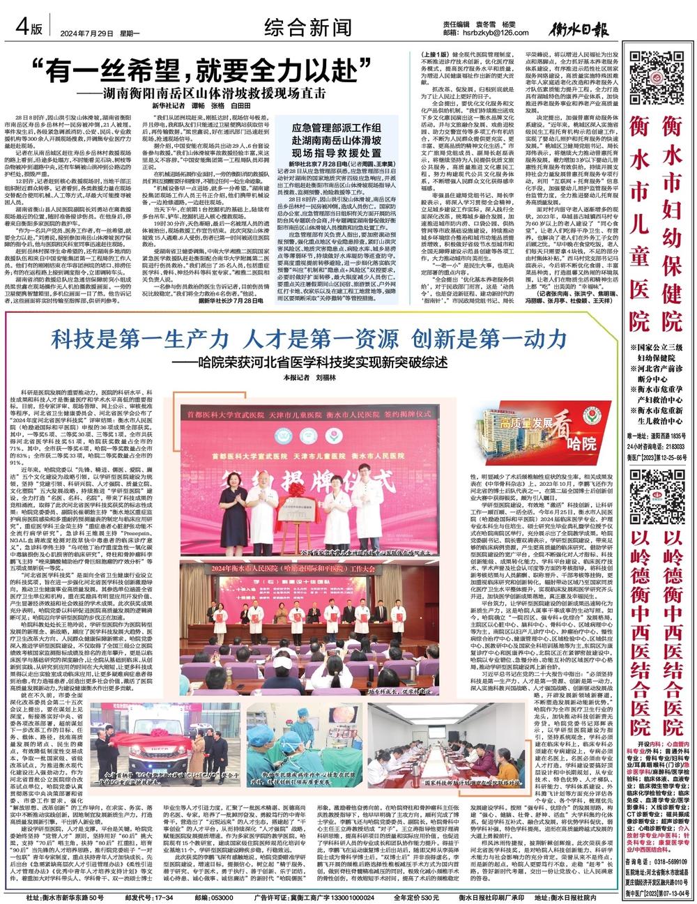 學研型醫院建設,有效地“激活”科技創新,讓科研工作一順百順、一活全活。今年6月25日,衡水市人民醫院(哈勵遜國際和平醫院)2024屆臨床醫學專業、護理專業本科生與住培生、碩士研究生畢業典禮暨學位授予儀式在哈院南院區舉行,充分展示出了全院教學成果。哈院黨委副書記、院長曹雙清表示,學研型醫院建設,帶來足夠的臨床病例資源,產生更高質量的臨床研究。借助學研型醫院建設的寬廣平臺,全院不斷強化對人才指標、科技創新能級、成果轉化能力、學科平臺建設、臨床醫療技術、學術聲譽及社會認可度等方面的考核指導,將科技創新考核結果與人員薪酬、職稱晉升、干部考核等掛鉤,更加重視臨床研究和創新轉化,輻射帶動區域乃至國家同質化醫療衛生水平整體提升,實現臨床發展和醫學研究齊頭并進,加快醫學創新成果落地,真正惠及幸福民生。