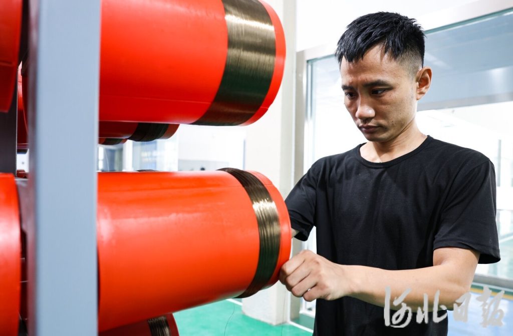 8月1日,在中纖新材料科技(承德)有限公司拉絲車間,工作人員正在查看玄武巖纖維生產情況。河北日報記者 李佳澤攝