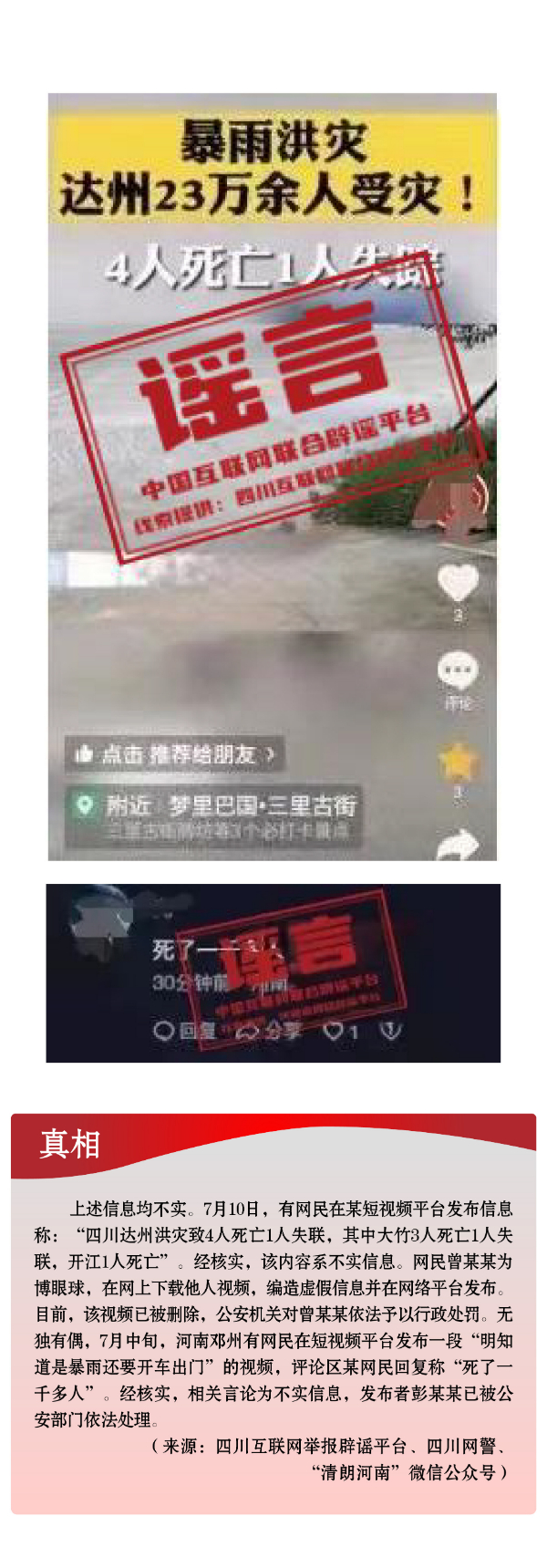 編造涉汛謠言擾亂秩序 虛構社會事件混淆視聽