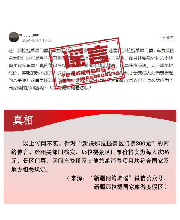 杜撰民生政策,企圖行騙牟利。7月,冒充官方發布虛假政策信息、假冒權威機構名義開展非法活動的情況時有出現。例如,一些不法分子冒用廣西南寧市住建局名義,發布所謂“南寧將發放住房公益補貼”的通知,實則是打著“發放補貼”的旗號設置騙局;有網民借“募集捐款20億元醫治2萬名西藏盲童”之名,成立“慈善團隊”籌集資金行騙。與此同時,隨著暑期旅游高峰到來,關于“搶購車票”“景區票價”等話題熱度攀升,涉旅游出行等不實信息借機搭蹭熱點,滋生擴散,擾亂旅游市場秩序。如“火車票全網免費退”“專享火車票無憂退”等消息,實則是某購票平臺為吸引新會員的營銷炒作之舉;謠言“新疆那拉提景區門票300元”“新疆江布拉克景區門票453元”或有意混淆景區門票與區間車費,或罔顧事實故意抹黑,誤導廣大游客,損害當地旅游形象。