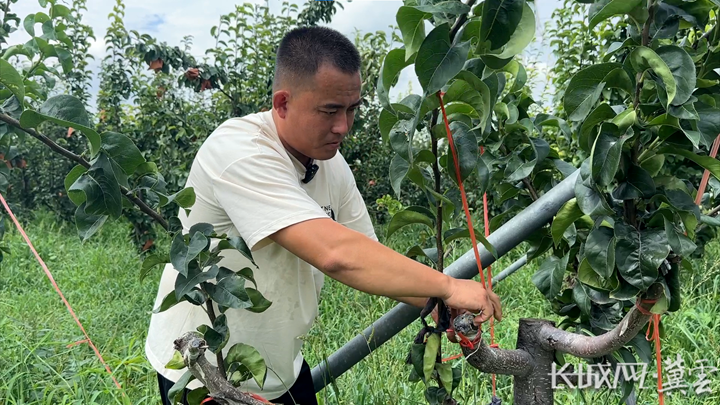 海興農(nóng)場(chǎng)堿梨基地技術(shù)員竇國(guó)望正在對(duì)園區(qū)內(nèi)的梨樹進(jìn)行管理。長(zhǎng)城網(wǎng)·冀云客戶端記者 趙博軒 攝