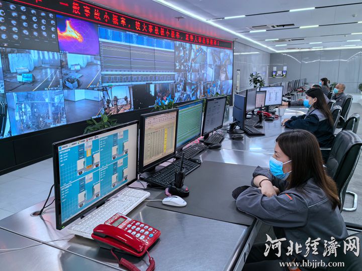 冀南鋼鐵公司工作人員緊盯電腦屏幕上煉鐵高爐生產的狀況。河北經濟日報記者 吳新光 攝