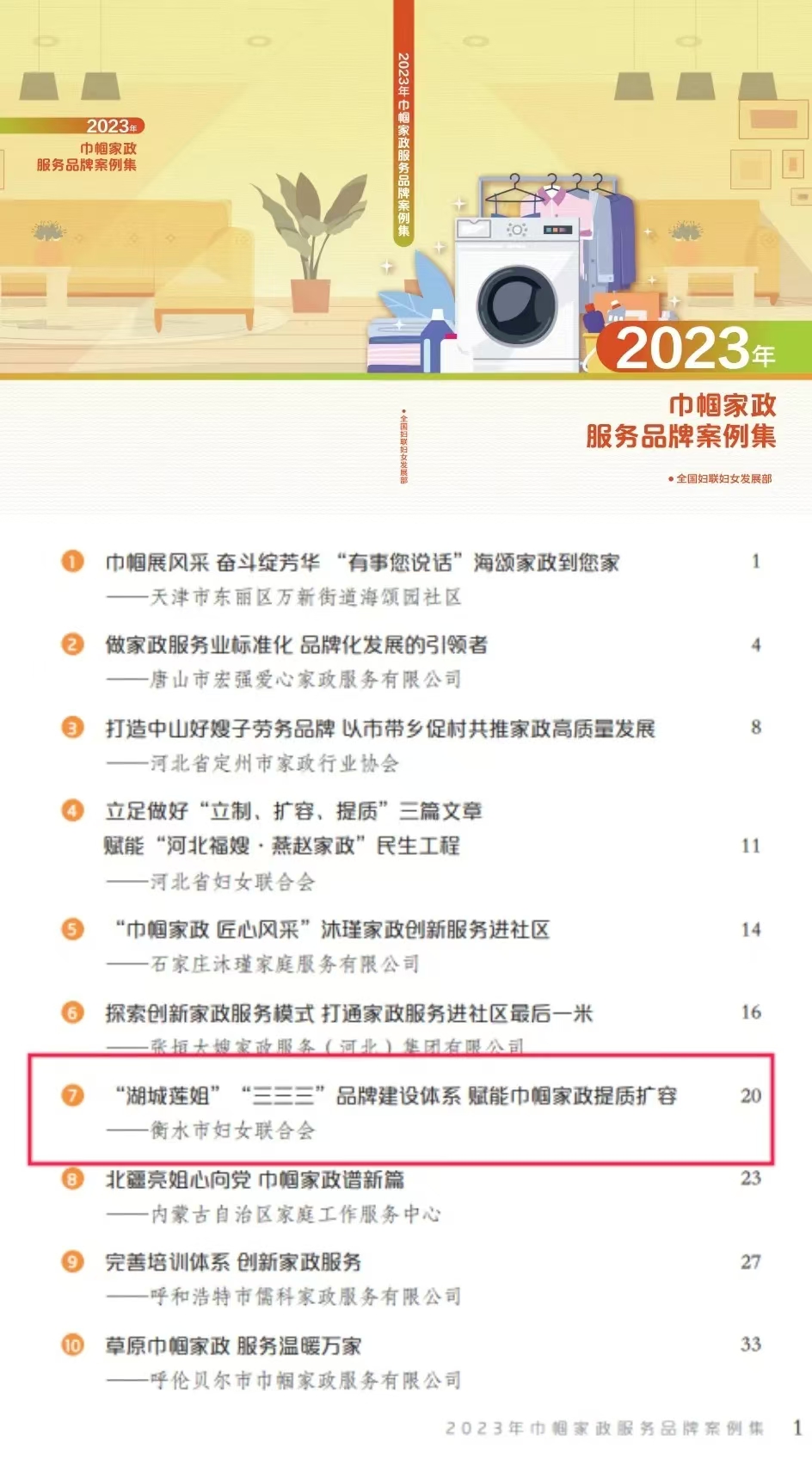 近日,全國婦聯(lián)婦女發(fā)展部聚焦巾幗家政服務(wù)品牌建設(shè)的新思路、新舉措、新經(jīng)驗、新亮點,示范推動巾幗家政提質(zhì)擴(kuò)容,開展了“巾幗家政、匠心風(fēng)采——巾幗家政服務(wù)工作品牌或行業(yè)領(lǐng)跑者案例征集活動”。經(jīng)網(wǎng)絡(luò)征集、復(fù)合初選、專家評審,49個典型案例脫穎而出,衡水市“湖城蓮姐”家政服務(wù)品牌案例入選其中。
