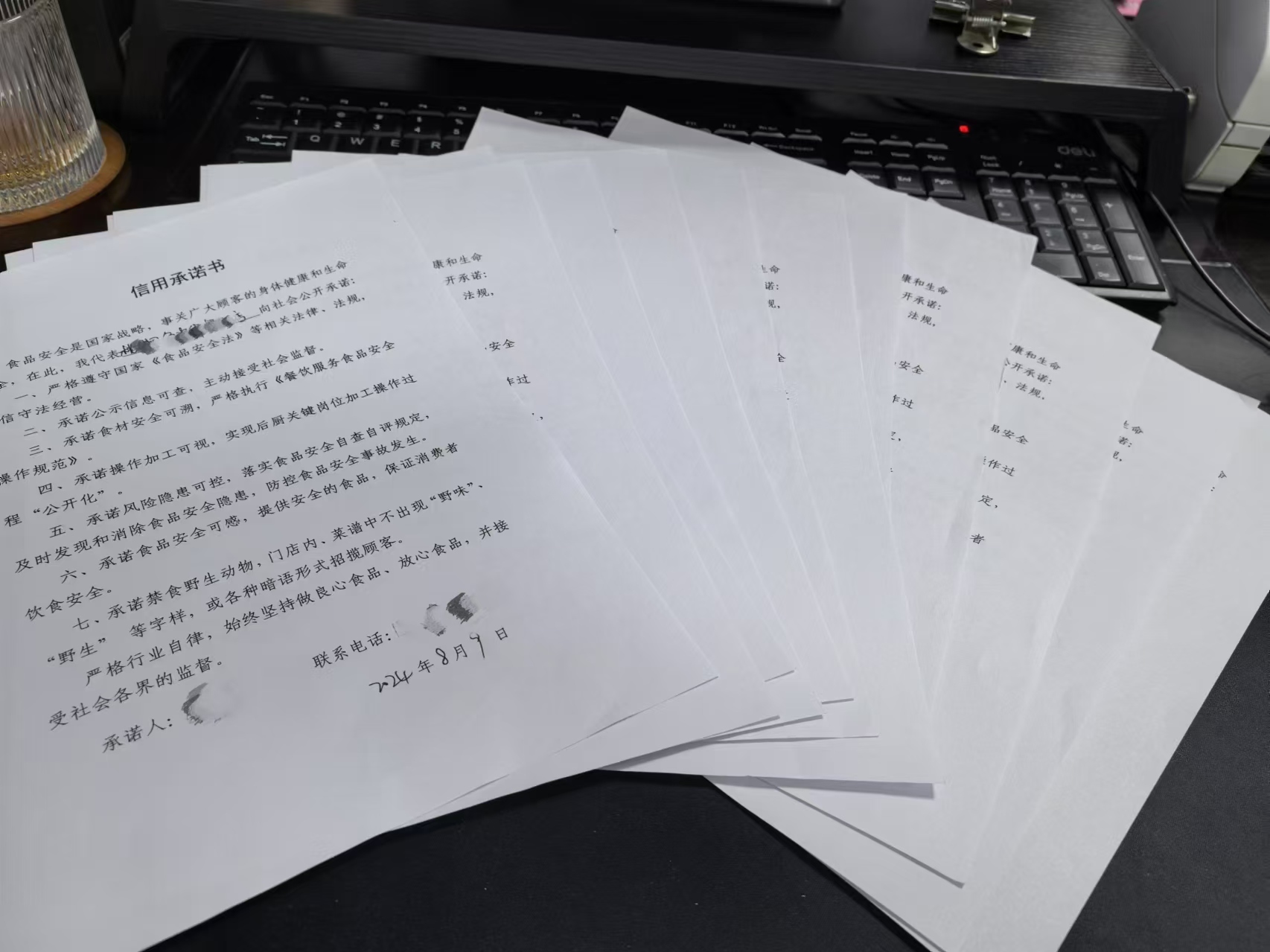 “您看一下,這是一份《信用承諾書》,在經營門店的同時,一定要嚴格遵守各項法律法規,帶頭做誠信經營表率。”活動中,市市場監督管理局工作人員深入一線,挨家挨戶上門,以“一對一”入戶宣傳的形式,向市場主體發放《信用承諾書》。工作人員詳細介紹了信用承諾書中的各項要求,并講解誠信經營的重要性,提醒廣大商戶要自覺維護市場秩序,從自身做起,從小事做起,守誠信、重承諾,號召廣大商戶積極響應,認真閱讀并簽訂承諾書。
