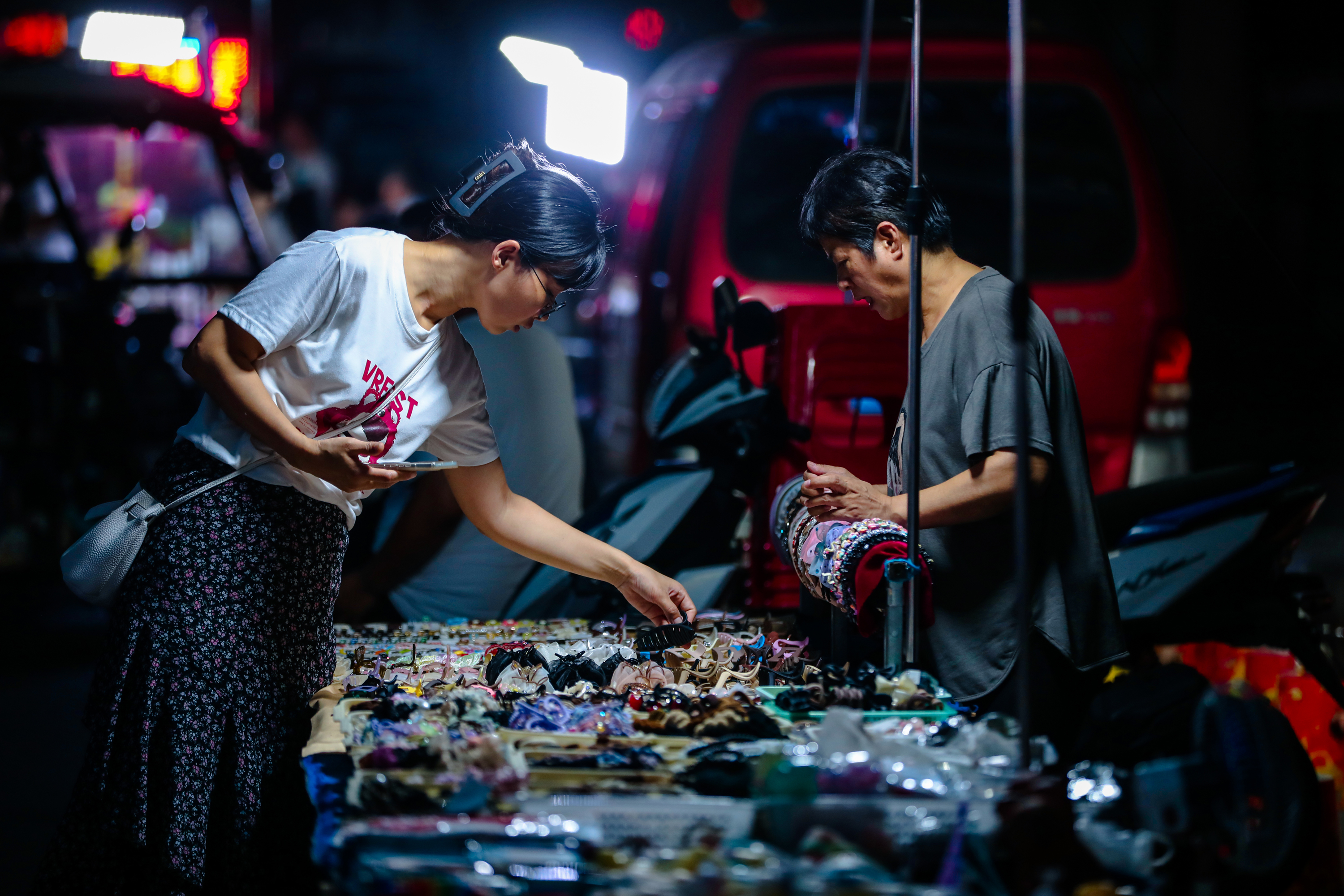 夜生活是城市活力的象征。夜幕降臨,小城升起了一縷濃郁的煙火氣——各種小吃攤位前排起了長隊,燒烤的香氣、冰鎮飲料的清涼,讓人垂涎欲滴。不少市民踏著夜色,品嘗炸肉串、水果撈、臭豆腐等各色美食。夜市不僅是美食的天堂,也是手工藝品和創意產品的展示平臺,為夜市增添了一份文化氣息。