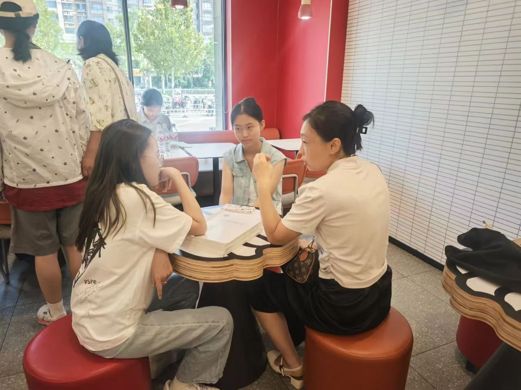 我們約好地點,孩子們陸陸續續到達,每個孩子都非常有活力,他們拿出作業讓我們檢查,我們也提問他們一些知識點。