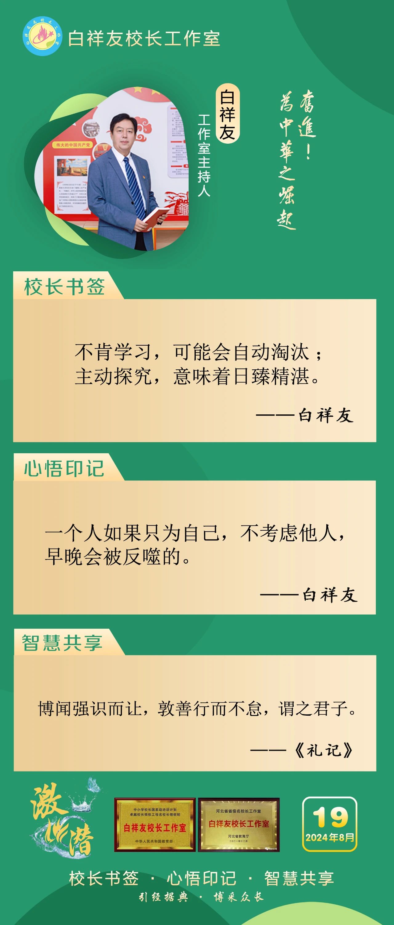 “白祥友校長工作室”成立于2019年4月,是教育部“國培計劃”中小學(xué)名校長領(lǐng)航工程、河北省首批名校長工作室,目前省內(nèi)外成員校21個。工作室堅持“資源共享、智慧共融、互助共贏”理念,已成為思想碰撞的交流場,資源共享的品牌站,成果展示的輻射源。