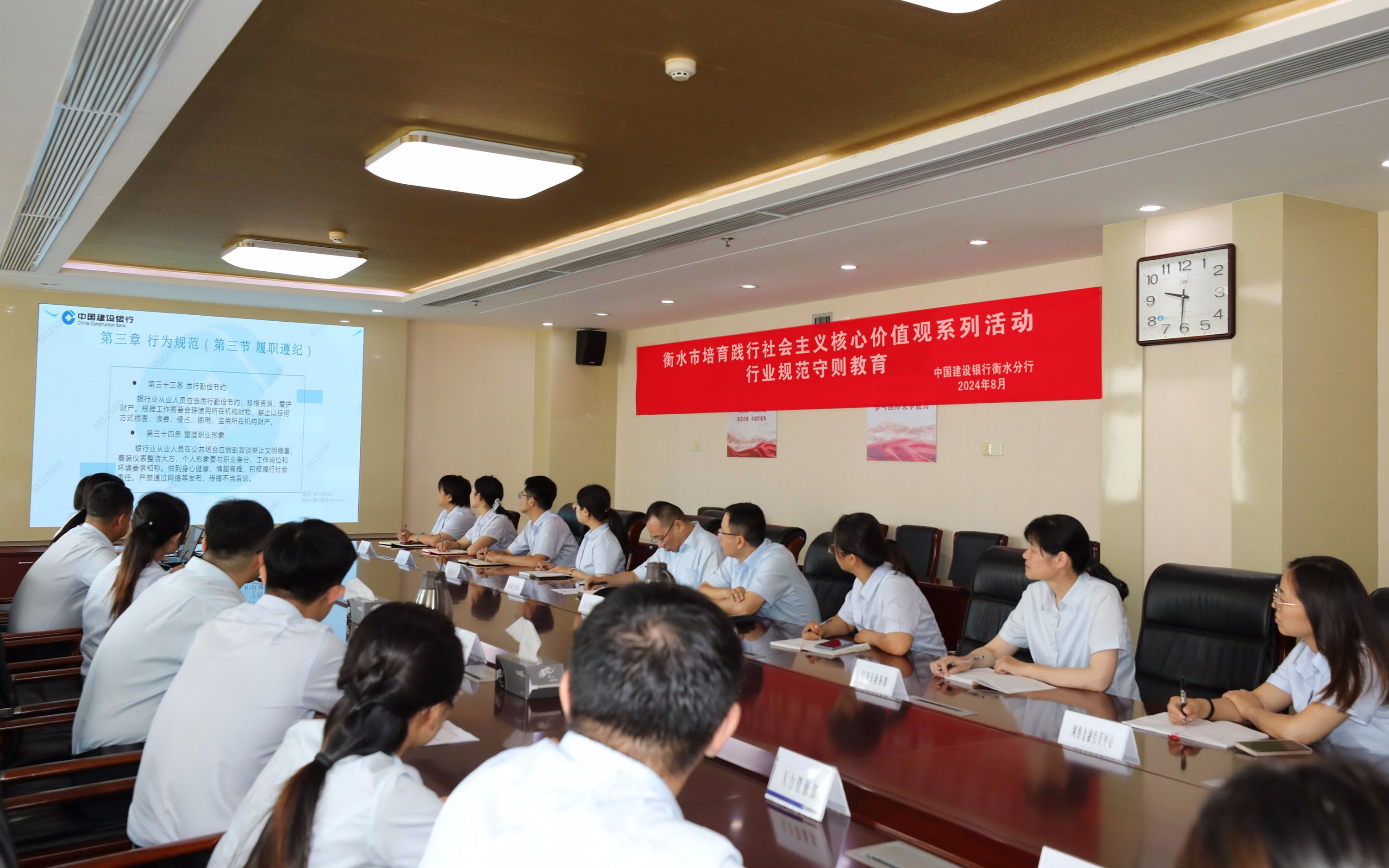 近日,建行衡水分行開展“行業規范守則教育”社會主義核心價值觀教育實踐活動,通過集中學習、案例分析、經驗交流等形式,深入解讀行業規范守則,強調誠信經營、合規操作的重要性,鼓勵員工將規范守則融入日常工作。