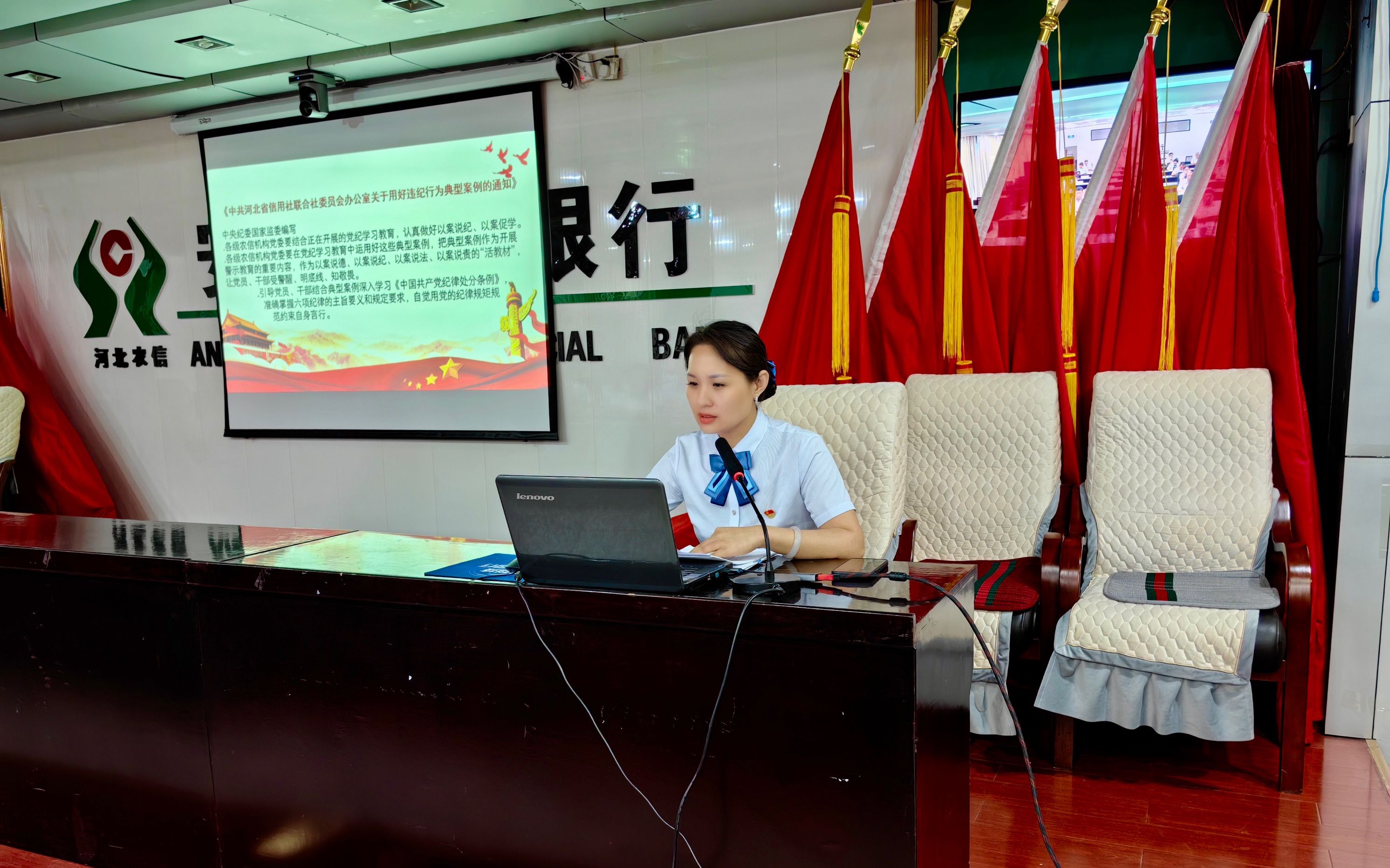 隨后,總行黨委書記扈健帶領與會人員對涉及金融領域的14個違紀案例進行了學習。他強調,上述典型案例,嚴重違反了黨的紀律規矩,違反了中央八項規定精神,涉案人員理想信念蛻變、宗旨意識淡薄,背離了全心全意為人民服務的根本宗旨,全行黨員干部要深挖本行業本系統違紀典型案例背后的思想根源,要從中汲取教訓,引以為戒,要結合當前黨紀學習教育和狠剎違規吃喝歪風集中整治工作要求,自覺嚴守紀法紅線,筑牢拒腐防變思想防線,為安平農商銀行營造遵規守紀、風清氣正的政治生態和工作環境。