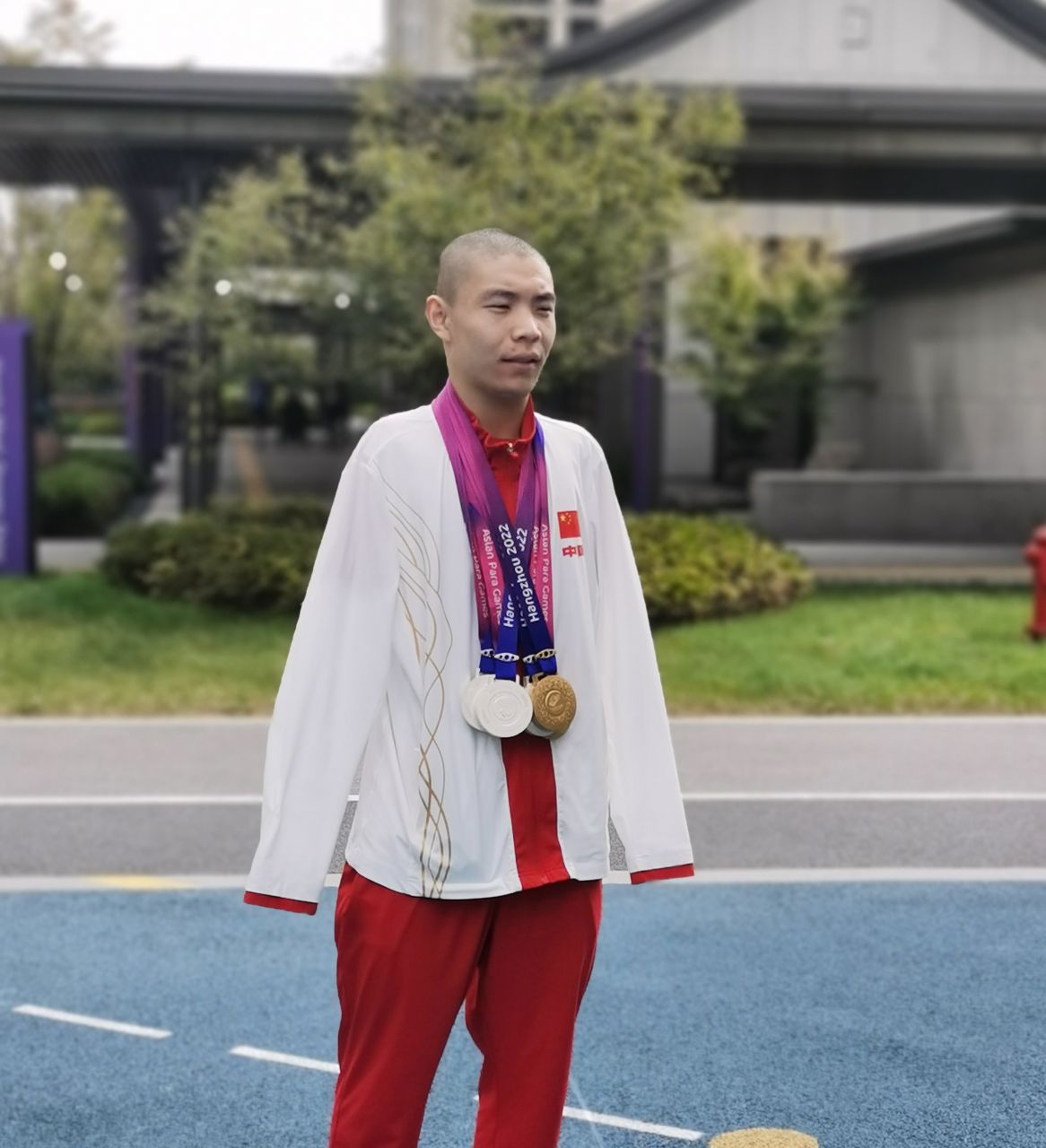 杭州亞殘運會期間,在亞運村里郭金城身帶獎牌。資料圖
