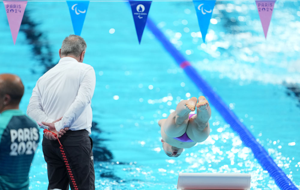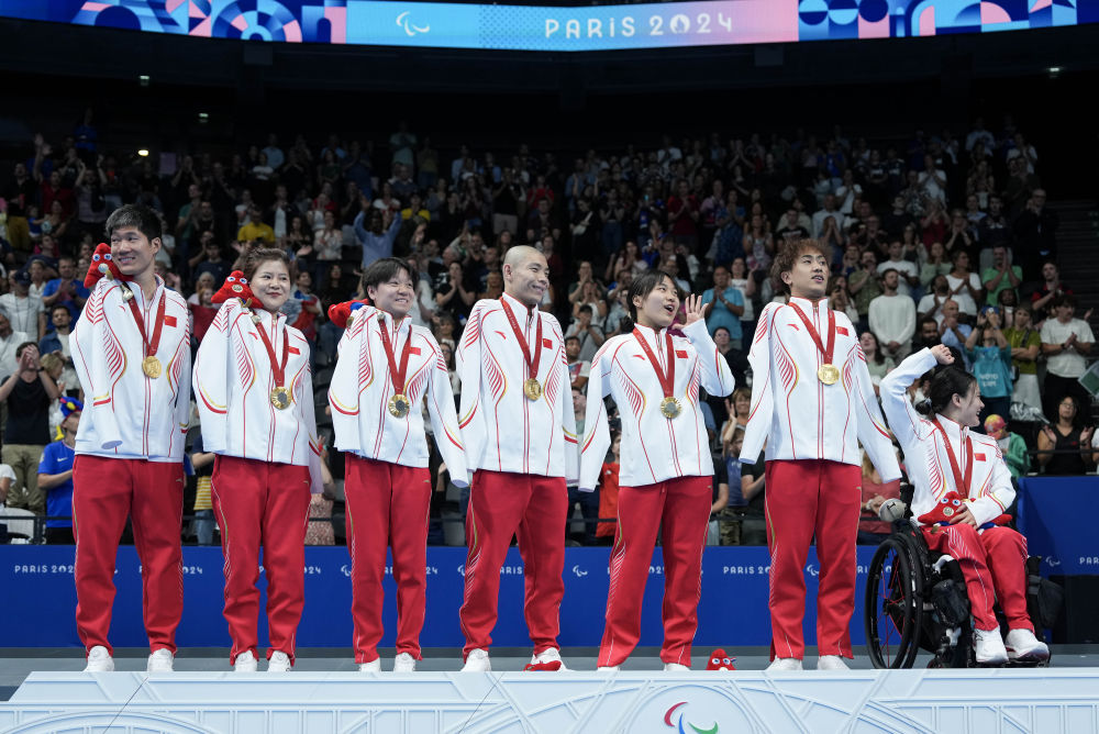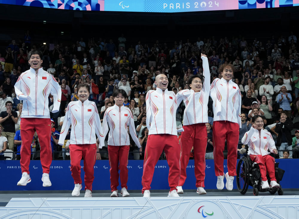 新華社巴黎8月30日電(記者馬思嘉、張薇)30日晚的巴黎拉德芳斯體育館,巴黎殘奧會男女混合4X50米自由泳接力20分決賽上演。諸多目光被中國隊最后一棒選手吸引——他不戴泳帽、剃了光頭,抵達終點時用頭奮力撞向池壁,為中國隊鎖定金牌,并以2分14秒98打破世界紀錄,領先排名第二的美國隊4.01秒。
