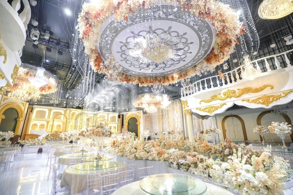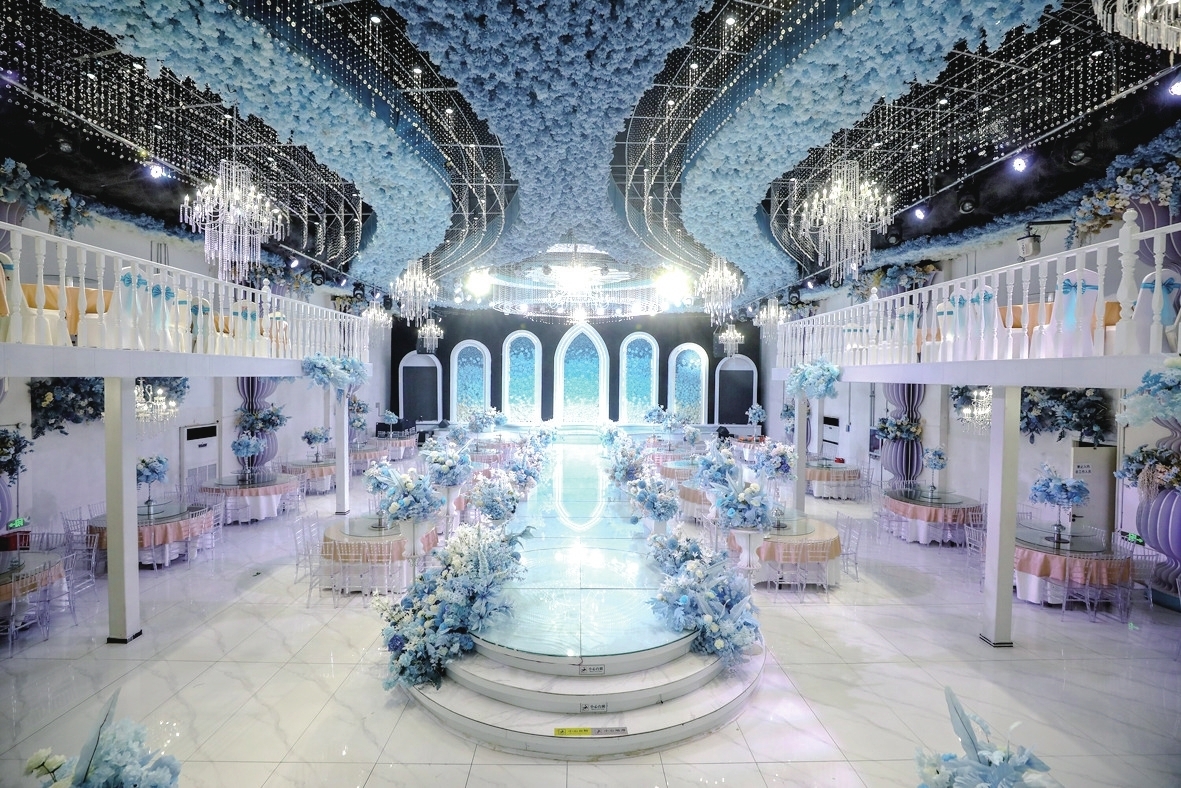 既然進入了這個行業,就要做行業的“領頭羊”,梁建衛迅速明確了要做衡水首家主題婚禮館的定位。2022年,酒店從最初只有一個主題大廳擴建到如今的主樓規模2000多平方米,共5個主題宴會廳,涵蓋中式、歐式、森系、海洋系等多種風格,還有商務包間20余個、適合訂婚宴及寶寶宴的包間10余個,最忙時一天同時辦6場婚禮加一場寶寶宴,可謂喜事盈門。