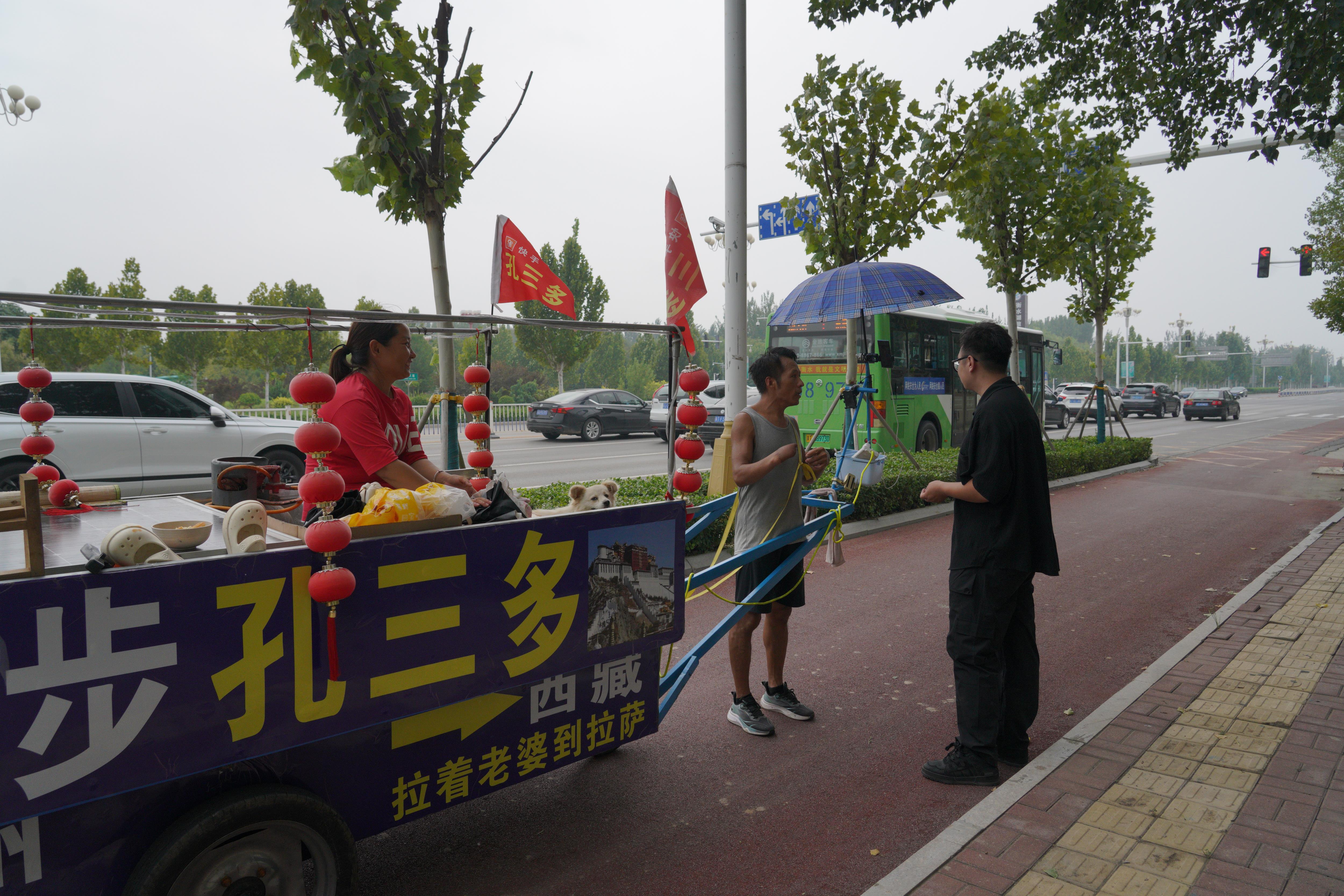 迎著微涼的小雨,孔三多沿著衡水市桃城區(qū)紅旗大街拉著車一直往南奔跑著,這是孔三多徒步拉車去西藏的第33天。一邊直播,一邊感受沿途城市風(fēng)土人情。如今,他和未婚妻肖大美正途經(jīng)衡水,白鷺踩荷,在風(fēng)光秀麗的衡水湖旁直播時(shí),他告訴我們,預(yù)計(jì)十個(gè)月,他們就可以進(jìn)入西藏,計(jì)劃明年8月底抵達(dá)拉薩。