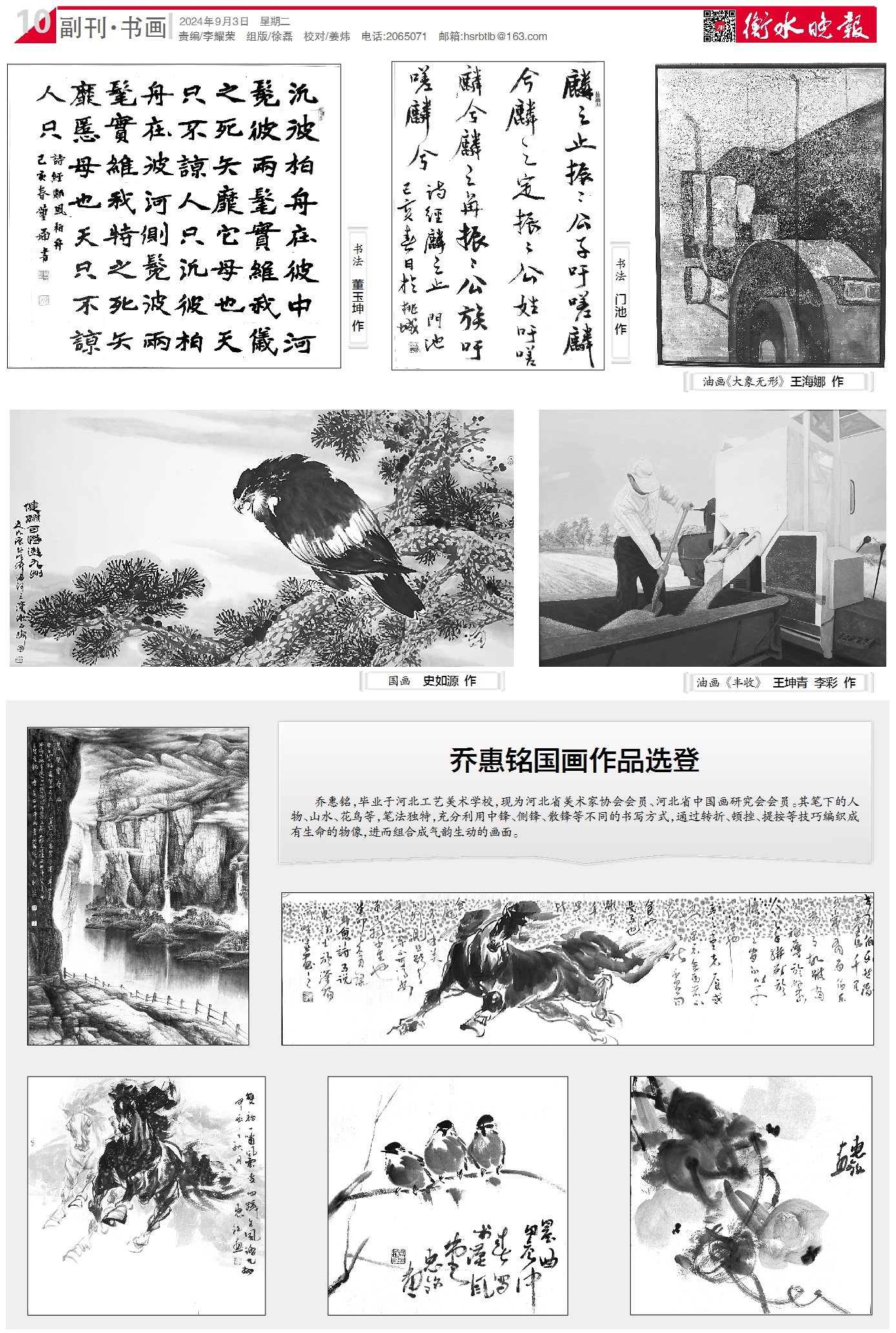 喬惠銘,畢業于河北工藝美術學校,現為河北省美術家協會會員、河北省中國畫研究會會員。其筆下的人物、山水、花鳥等,筆法獨特,充分利用中鋒、側鋒、散鋒等不同的書寫方式,通過轉折、頓挫、提按等技巧編織成有生命的物像,進而組合成氣韻生動的畫面。