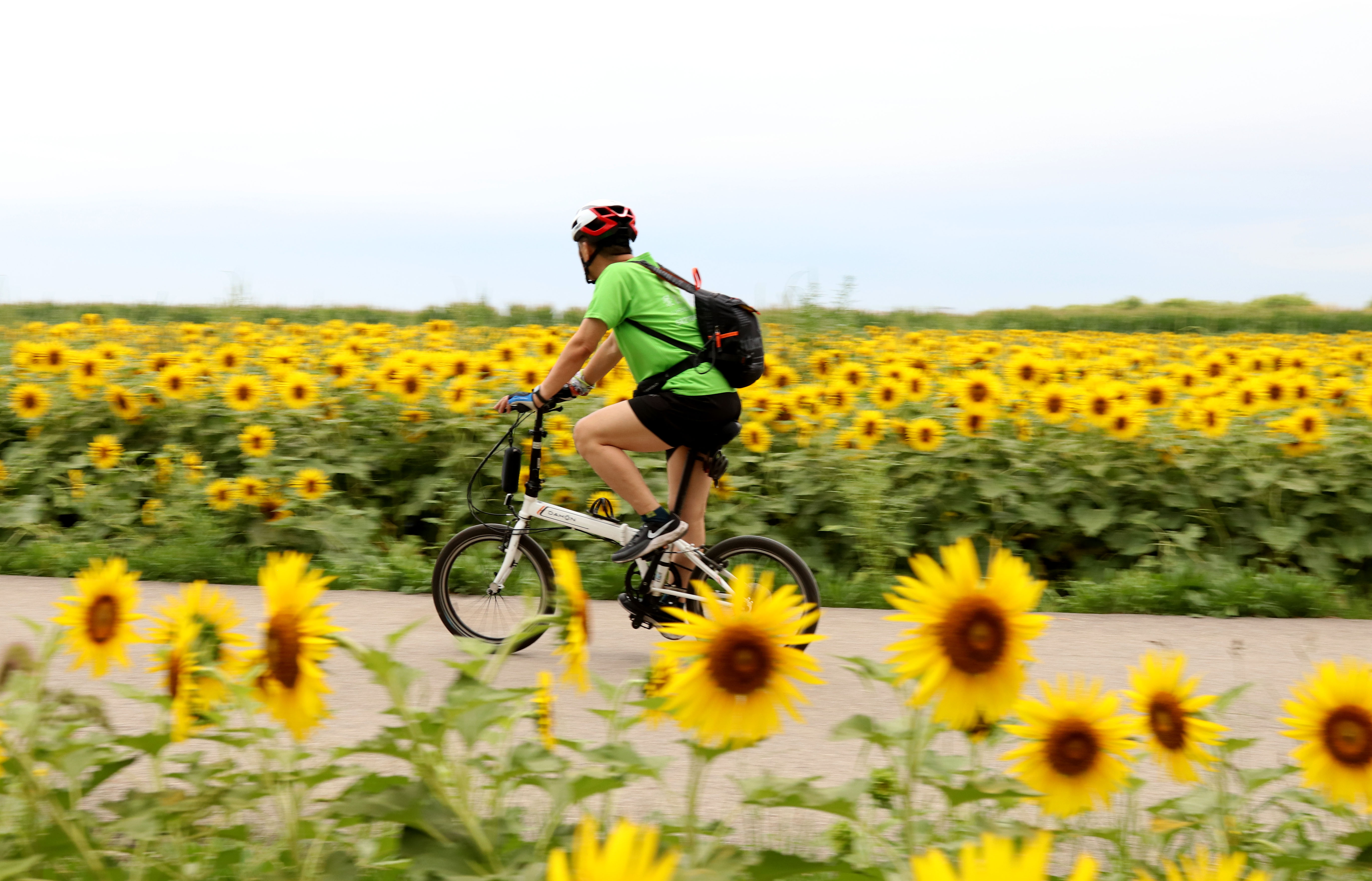 市民劉先生專門開車帶著家人來看花,他告訴我們:“從當地短視頻推薦里看到這里的向日葵開了,一大片一大片的特漂亮!今天趁假期帶著家人趕緊一起過來了。我們拍了很多照片。”藍天白云下,有金燦燦的向日葵花海相映襯,在哪里拍都格外的出片。航拍無人機也緩緩升起來,飛過花海鏡頭下,金燦燦的場面更加震撼。