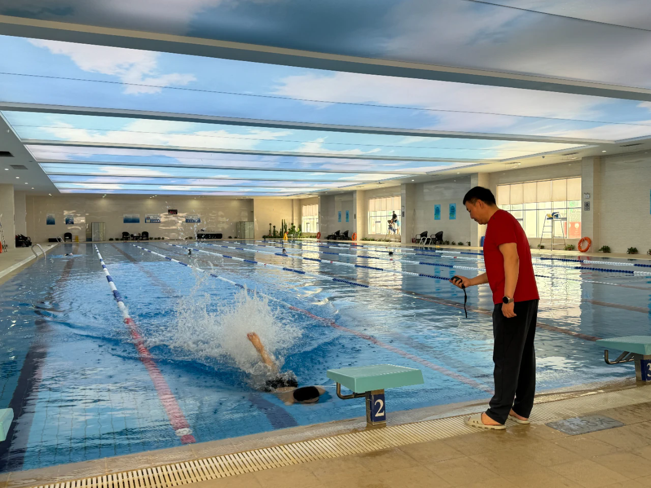 在保定的訓練館里,記者也看到了郭金城用頭撞線的場景。即便是在水下撞擊,記者站在岸邊也能聽到“咚”的一聲悶響。