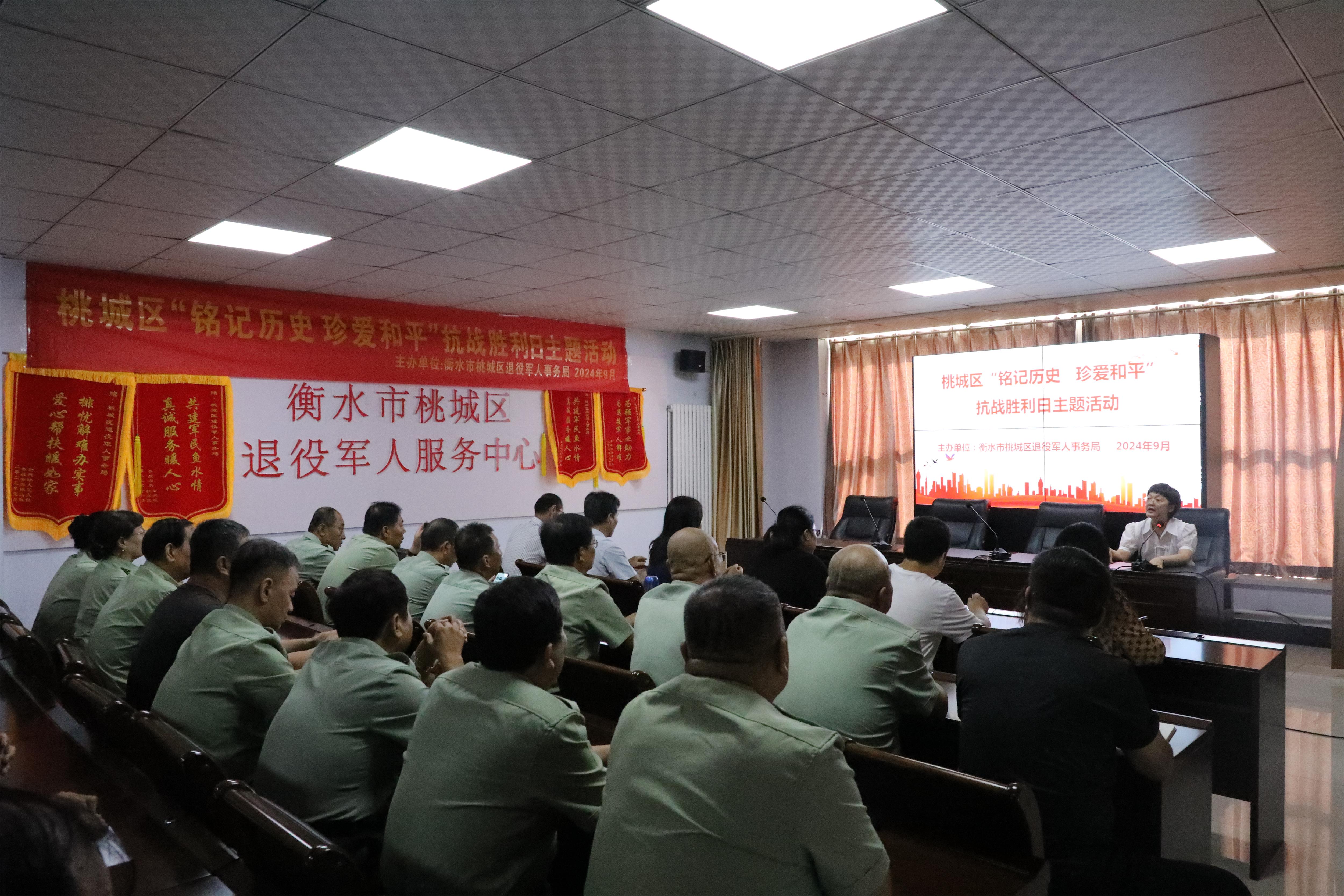 為紀念中國人民抗日戰爭勝利79周年,深切緬懷抗戰英烈的光輝業績,弘揚愛國主義精神,9月3日上午,桃城區退役軍人事務局組織開展“銘記歷史,珍愛和平”抗日戰爭勝利紀念日主題活動。區退役軍人事務局全體干部職工和桃城區參戰退役老兵共計40余人參加。