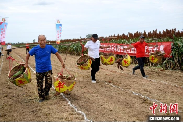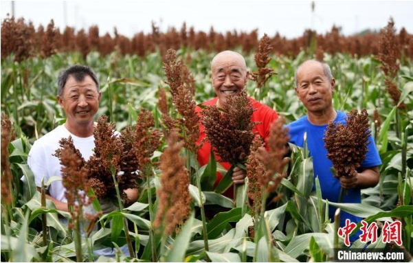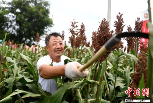 近日,河北省衡水市阜城縣10萬畝釀酒紅高粱進(jìn)入成熟期。9月2日,在阜城縣崔家廟鎮(zhèn)小息莊村的高粱地里,村民聚到一起舉辦了一場迎高粱豐收農(nóng)事趣味運動會,把農(nóng)活中最常見的挑、扛、割等動作變?yōu)檫\動比拼,感受豐收喜悅。近年來,阜城縣積極改變傳統(tǒng)種植方式,轉(zhuǎn)型種植高產(chǎn)抗旱的釀酒專用糯高粱“冀釀2號”,成為富民增收的重要產(chǎn)業(yè)之一。