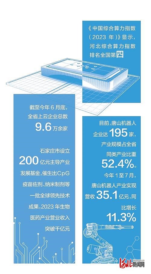 張家口謀建京津冀“算力之都”,目前累計投運大數據服務器160萬臺;位于廊坊的河北人工智能計算中心,是河北首個國家新一代人工智能公共算力開放創新平臺……《中國綜合算力指數(2023年)》顯示,河北綜合算力指數排名全國第四。海量數據匯成“算力長河”,筑起河北算力新優勢。