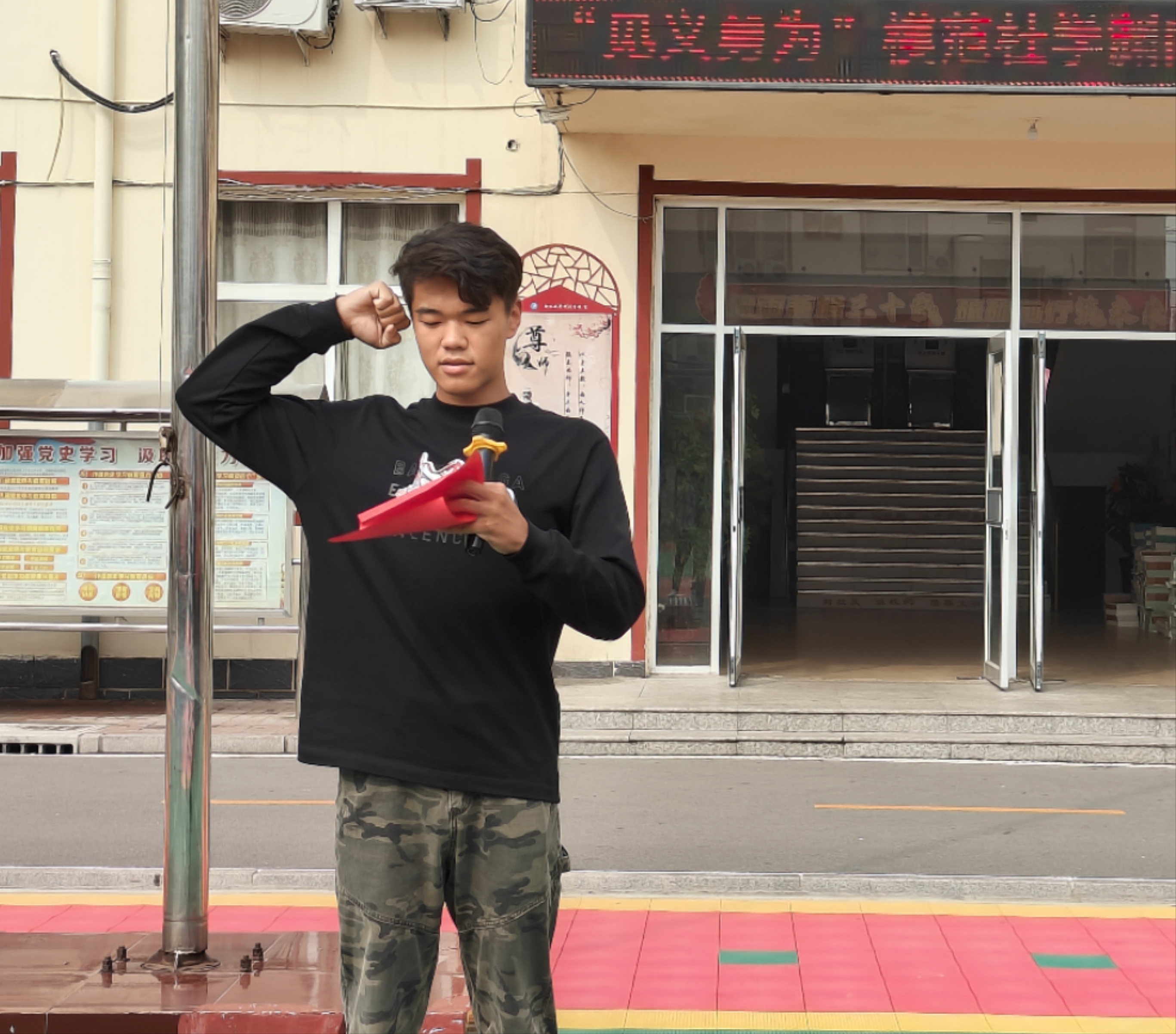 在表彰環節,所有人的目光都聚焦在了這名年輕的英雄——杜學淵身上。他站在國旗下,手持學校頒發的榮譽證書,臉上洋溢著青春的朝氣與自豪。“在我心中,每一個生命都是寶貴的。”杜學淵說,“那天的情景歷歷在目,當我看到有人落水時,我并沒有多想,只知道自己應該去救人。”他的話語雖平實無華,卻道出了每一位見義勇為者內心最真實的想法。緊接著,杜學淵帶領全體同學進行了宣誓:“牢記父母囑托,嚴格遵守學校紀律,磨煉堅強意志……”