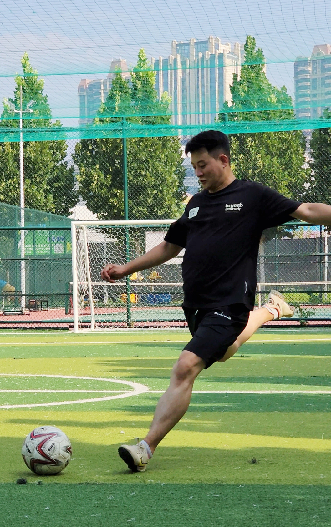 高中時期,付艷磊是一名體育特長生,在日常訓練中他發(fā)現(xiàn)長跑更加適合自己。在教練的悉心指導下,他努力提升自己的耐力與速度,一次次地刷新著自己的成績。“在大學時,我選擇主修足球和羽毛球,輔修長跑,帶著自己年少時的夢想繼續(xù)向前。”付艷磊說。