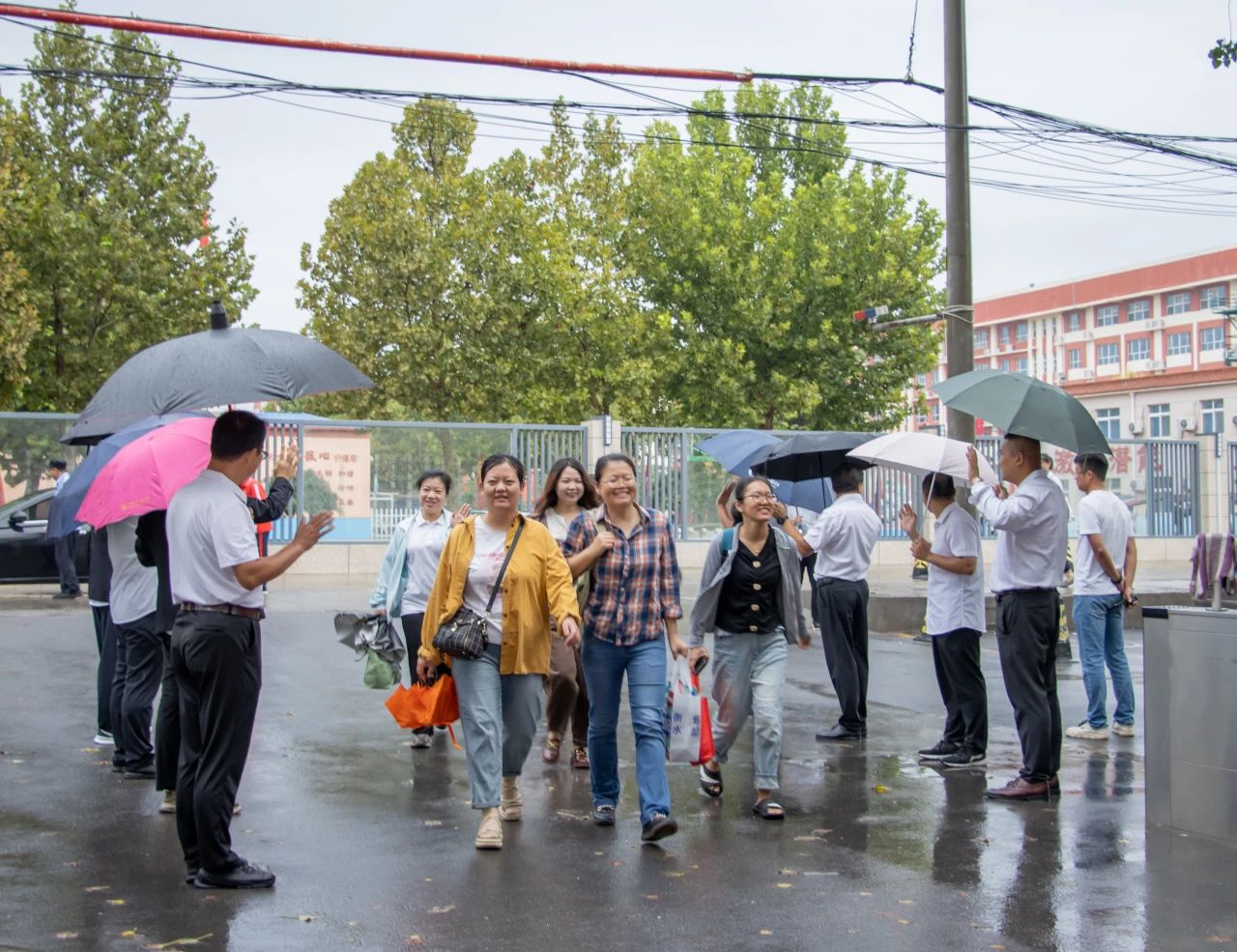 教師節當天清晨,秋雨綿綿,涼風陣陣,十三中校領導及中層干部早早守候在大門口,面帶微笑,為每一位踏入校門的老師送上最誠摯的節日問候。伴隨著微微秋雨,老師們陸續到來,開心揮手回應這份特殊節日里的迎接與問候。
