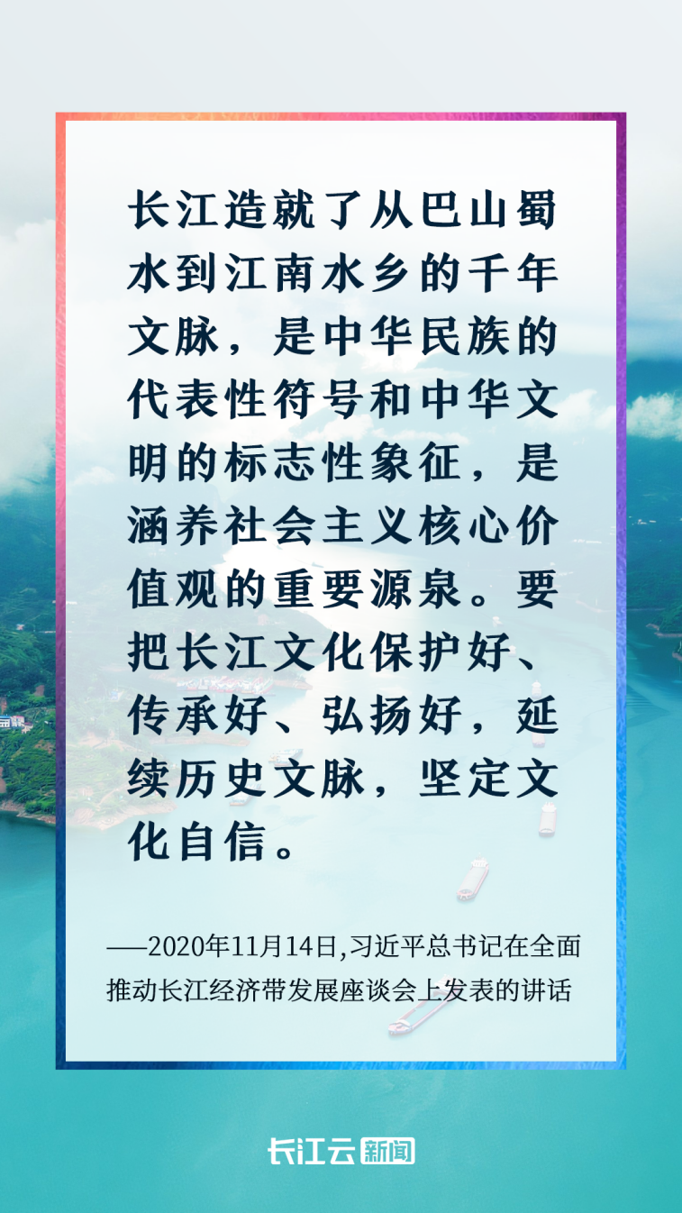 長江之水萬古奔流,千年文脈生生不息。黨的十八大以來,習近平總書記高度重視長江文化保護傳承弘揚,先后發表一系列重要講話,作出一系列重要指示批示,強調“要把長江文化保護好、傳承好、弘揚好,延續歷史文脈,堅定文化自信”。