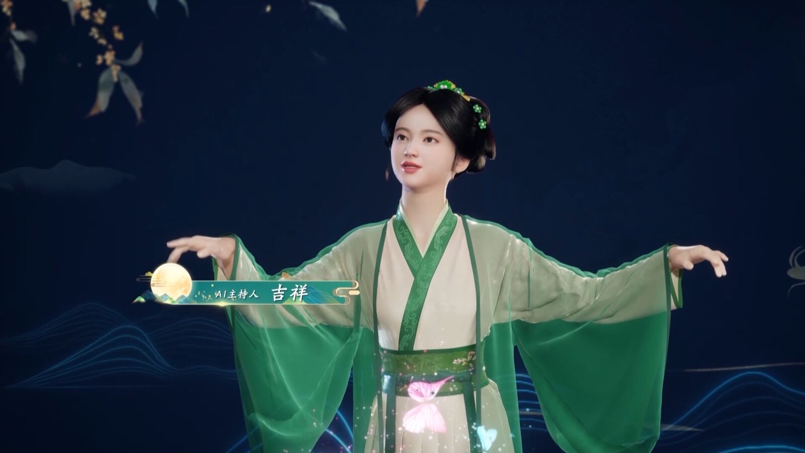 本場中秋特別節目創新串聯方式,首次使用河北廣播電視臺AI主持人“吉祥”完成各會場之間的串聯主持,賦予節目更具科技感的觀看體驗。